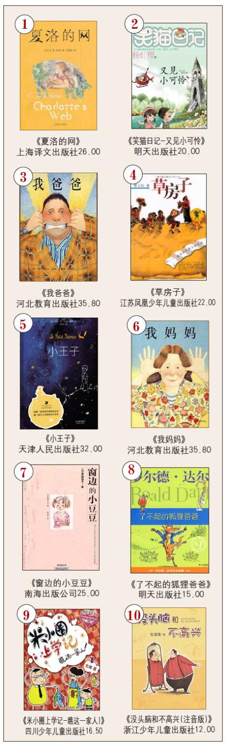 从上榜的卡通/漫画/绘本类图书内容来看,一部分图书是面向年龄较小的读者,一般在六岁以下,书中内容大多通过简单文字配精美可爱的插图的方式来呈现,让小读者更容易理解书中的情节,如《好饿的毛毛虫》《猜猜我有多爱你》;还有一类主要是面向年龄稍大,可以自主看书的青少年,甚至是成年人,如《父与子全集》和《三毛流浪记》,这类图书的内容主要以多格漫画形式展现,配以幽默夸张的简短语言。■
