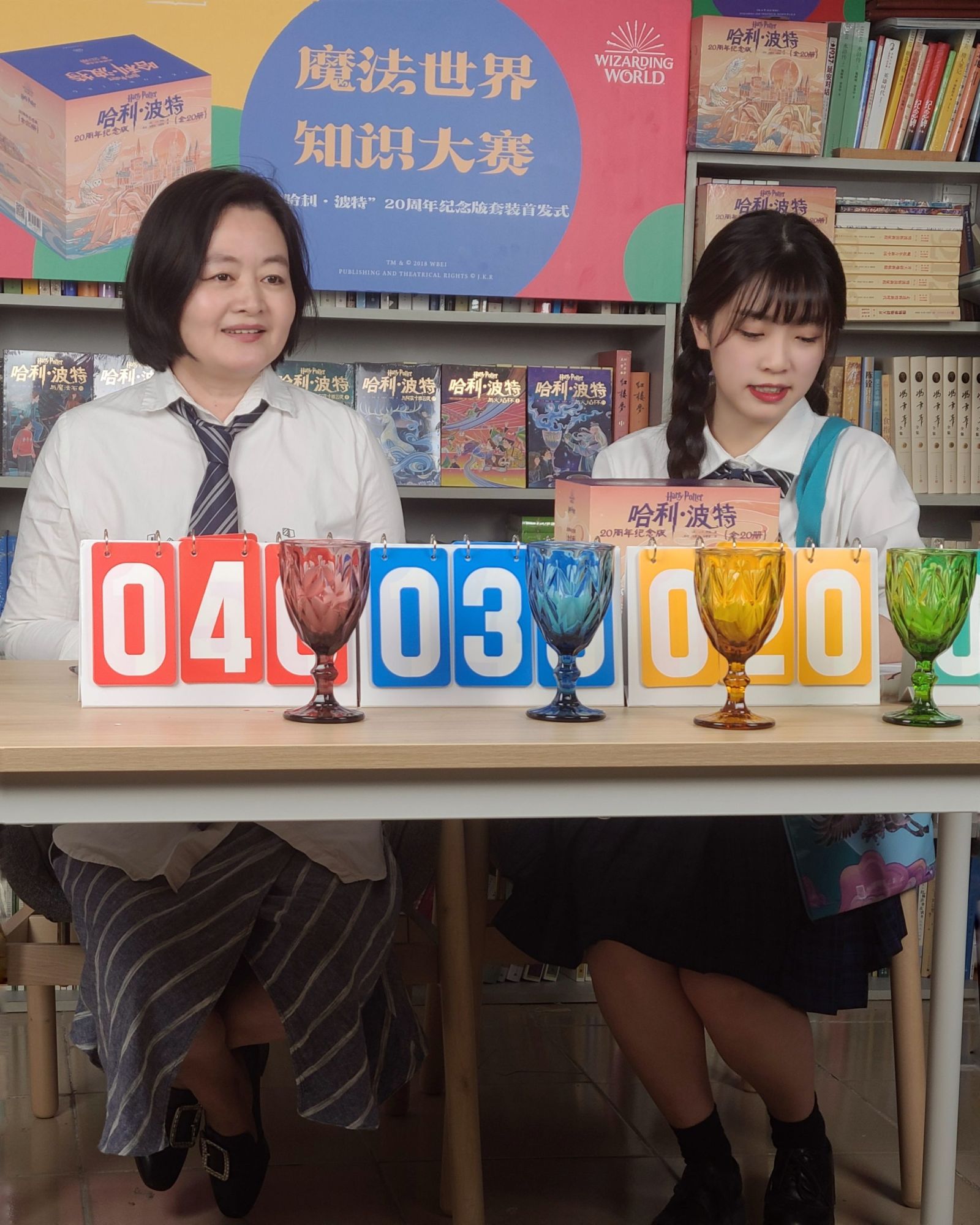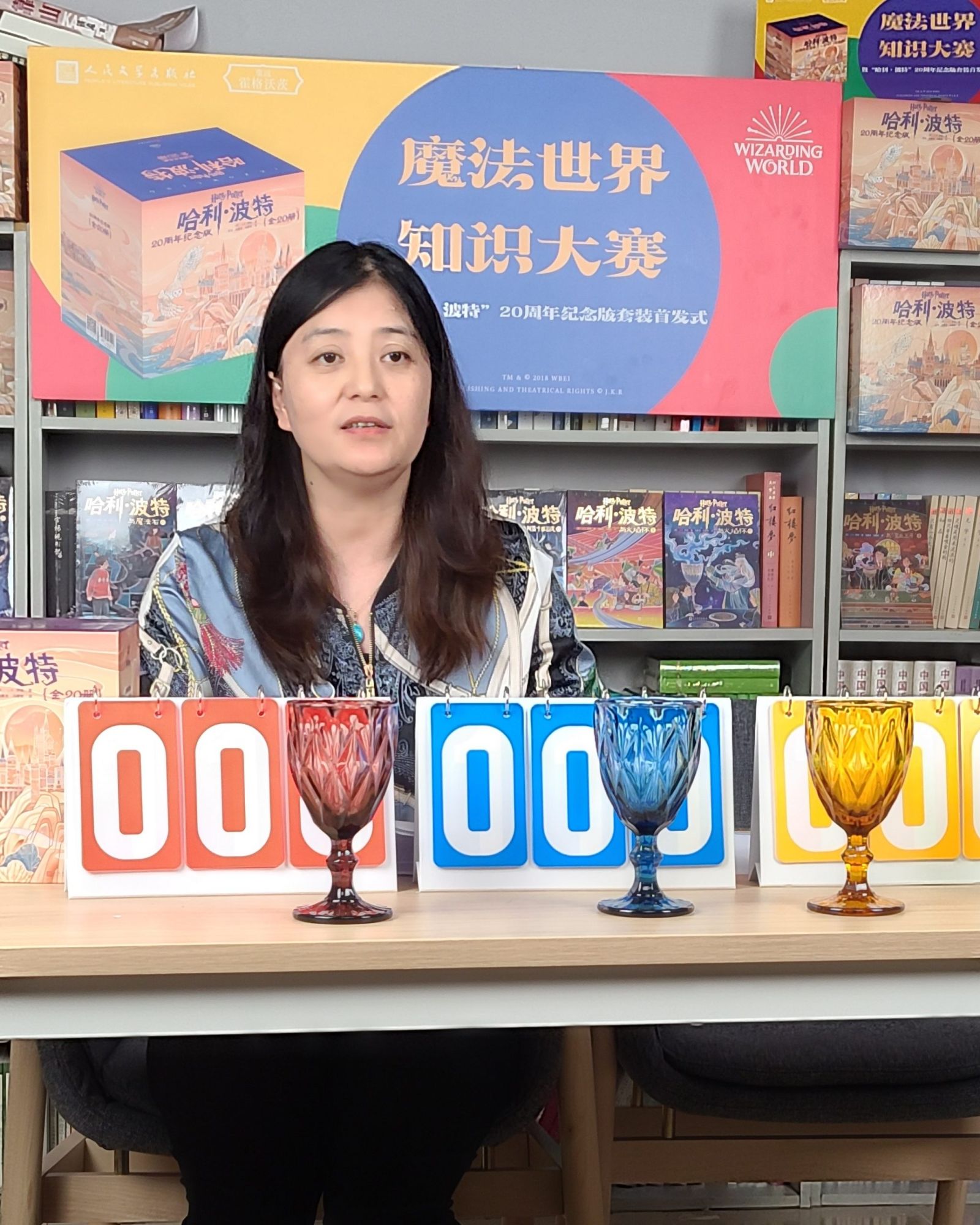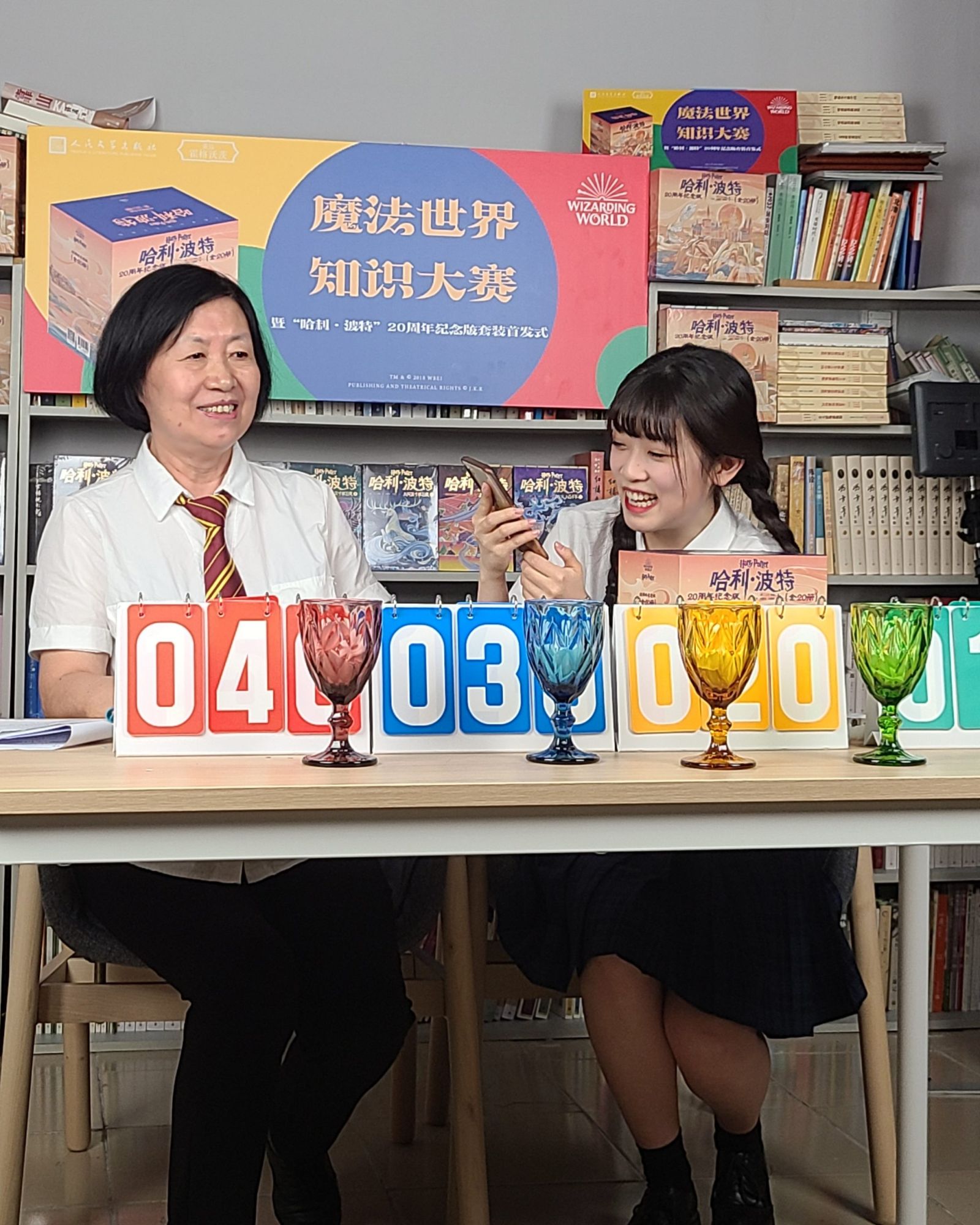 知识大赛由来到对角巷、登上特快列车、进入霍格沃茨和分院帽的挑战四个环节构成,问题均来自“哈利·波特”图书内容,有填空问答、图片题、推理题等等。经过四个环节的比赛,最终角逐出获得荣誉的学院与获胜个人,这些读者分别获得了人文社提供的20周年纪念版套装、英汉对照版版《死亡圣器》、非卖品的“哈利·波特”帆布袋等图书奖品。