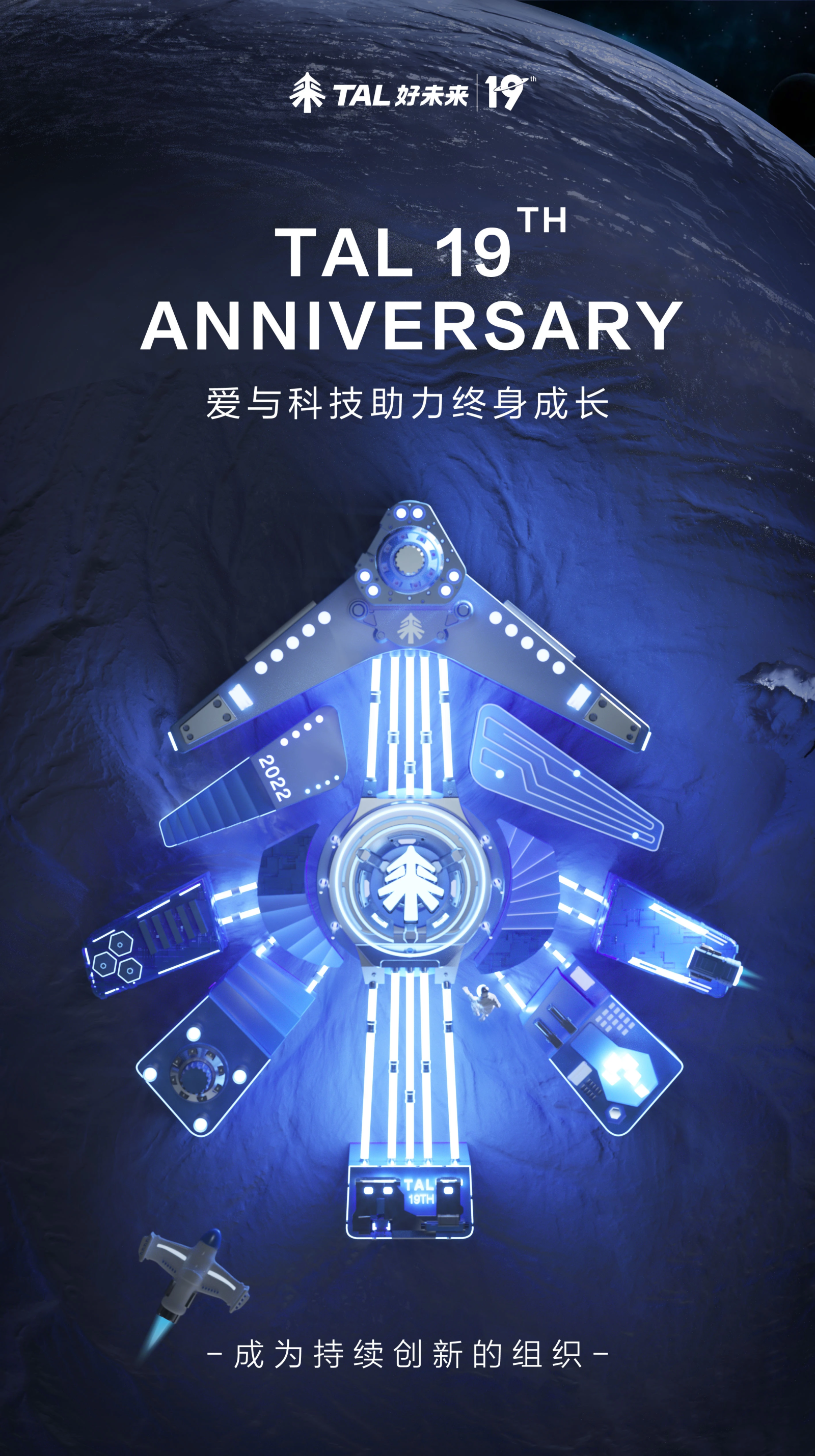 8月24日,在好未来19周年司庆上,好未来创始人兼CEO张邦鑫面向全体员工直播分享,正式公布好未来全新的使命和愿景,新使命为“爱与科技助力终身成长”,愿景更新为“成为持续创新的组织。”
