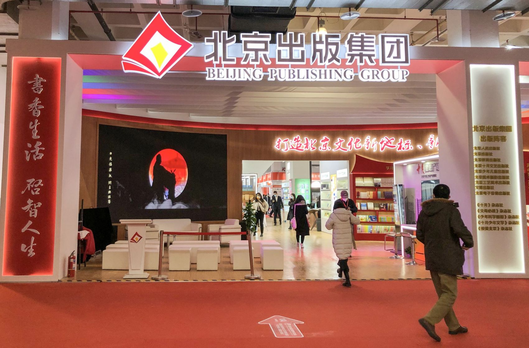 北京出版集团展区位于1号馆A厅(主馆)入口处近400平方米的显要位置,当人们走进现代又不失端庄的“北京主场”,迎面映入眼帘的是京版集团主展台以红、白、黑三色为主的撞色搭配,本次的展区打破了以往图书展会的中规中矩的造型设计,力求“用最少的元素来实现最纯粹的表达”,整个展区大胆运用声、光、电的组合,将“京版”品牌元素巧妙地融嵌其中,点缀出空间的跳跃感和灵动感,展厅正面展示墙上悬挂的“书香生活 启智人生”的横幅标语作为企业价值观,彰显着长期以来集团对主责主业孜孜不倦的追求,格外醒目,也反映出近年来集团锐意改革、积极进取的精神风貌和作为北京市属唯一的综合性出版机构特色鲜明的文化特色。
