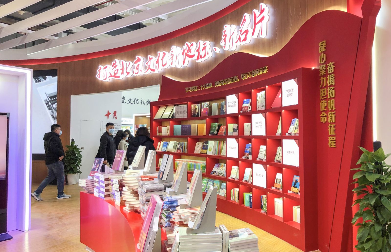 根据功能定位,集团展区分为主题图书展区、融媒体展区、北京文化新地标展区、抖音-京版集团联名直播间和集团子分公司独立展区五大部分。主题图书展区重点展示集团最新出版的宣传贯彻党的“二十大”精神相关图书,以及集团近年来荣获国家级大奖的精品力作;融媒体展区重点展示集团近期在融合创新方面发展成果以及融媒体互动体验设备;北京文化新地标展区着重介绍了集团在打造北京文化新地标,建设“十月星吧广场”京版文化园区方面的努力和成果;京版集团的现场直播间有两个:一个是集团与短视频平台抖音合作的北京出版集团冠名直播间,另一个是集团旗下各子分公司的专属直播间,主要展示文学、少儿、人文社科、艺术生活、科普、教育六大类的好书、新书。