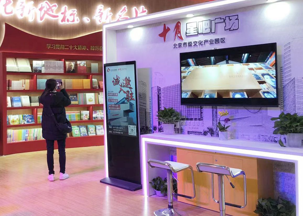 在首次设置的“文化新地标”专题展示区内,重点宣传了集团与西城区人民政府以首善标准共同建设的北京市级文化产业园区“十月星吧广场”,通过视频、图片资料、宣传页的形式为观众详细介绍连续两年写入《北京市西城区人民政府工作报告》的园区发展蓝图,体现着双方以文化为引领,以“出版”为发展基石,突出区位特色,打造具有“文化消费目的地”属性的泛文化生态开放社区,打造文化新地标所做出的不懈努力。