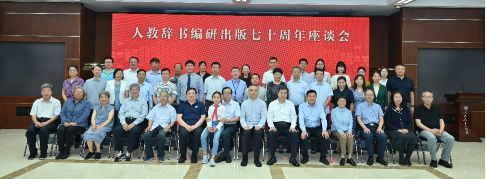 8月24日,人教辞书编研出版七十周年座谈会在京举行。中国编辑学会会长郝振省,中国辞书学会会长李宇明,中国出版协会副理事长兼秘书长王利明,人民教育出版社党委书记、社长黄强,人民教育出版社总编辑王日春等出席,来自国家语委、中国社会科学院、北京大学、清华大学、北京师范大学、复旦大学、华东师范大学、上海外国语大学、教育部语言文字应用研究所、山西省社会科学院、语文报社等单位的专家领导,以及来自教学一线的中小学优秀教师代表、读者代表等50余人参加了会议。
