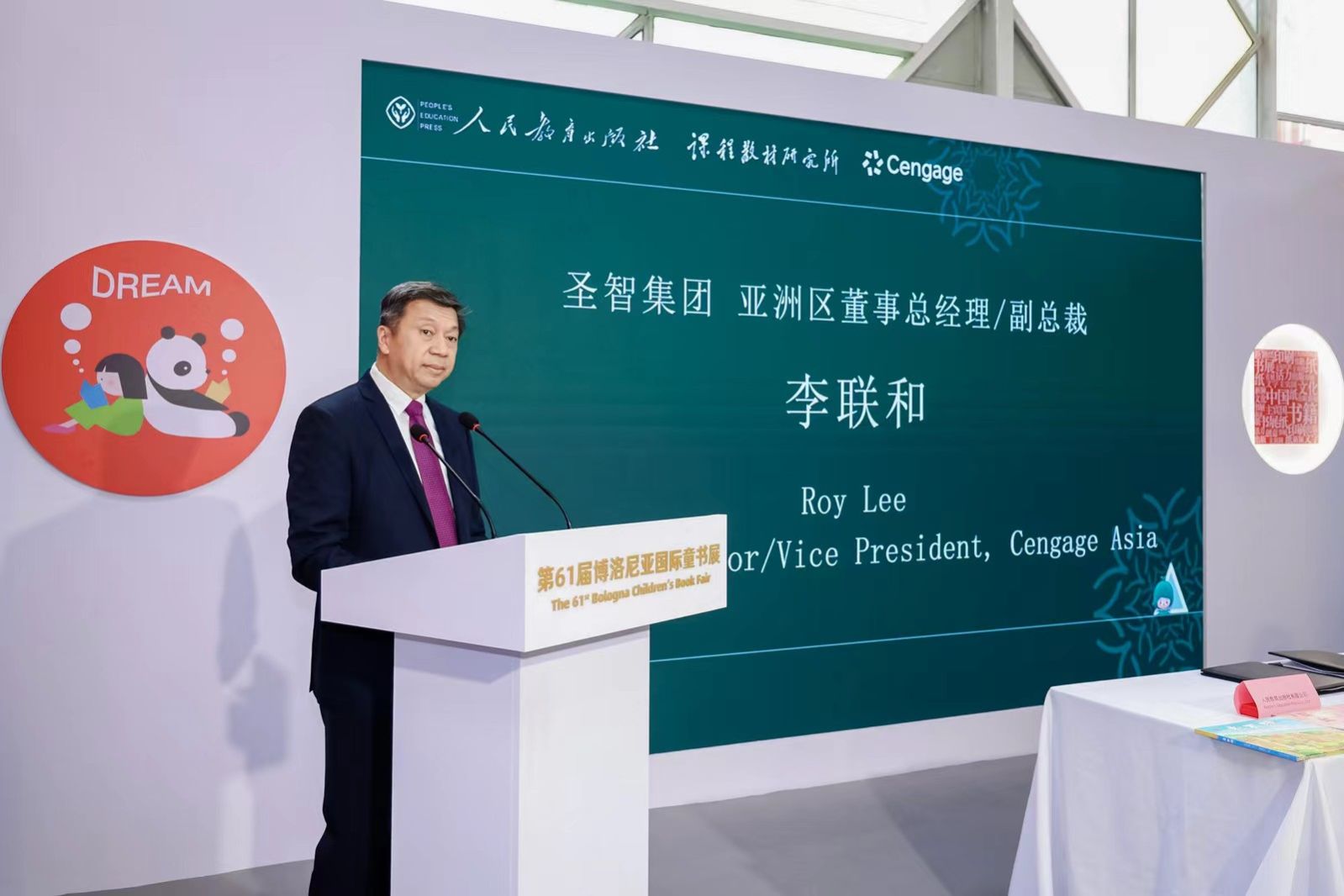 本次博洛尼亚童书展,圣智集团购买了人民教育出版社出版的“最美中国”系列图画书的全球英文版权。活动现场进行了版权输出签约仪式,由谭永平和李联和分别代表人民教育出版社和圣智集团签署版权输出协议。