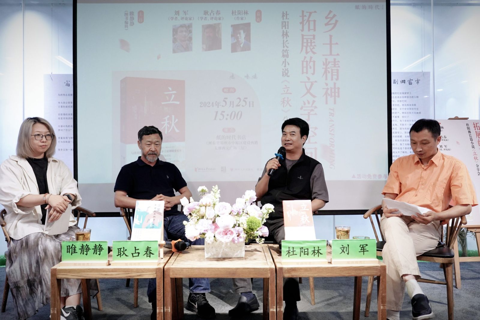 5月25日下午,四川作家杜阳林联袂耿占春、刘军两位河南知名学者、评论家,在郑州“纸的时代”书店与读者面对面,共同踏上了一场关于成长、变迁与梦想的文学之旅,深入挖掘《立秋》对乡土情怀的承续及文学领域的新探索。活动由编辑睢静静主持。