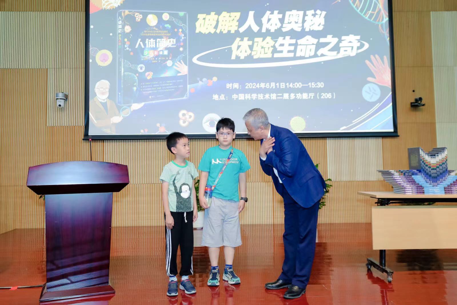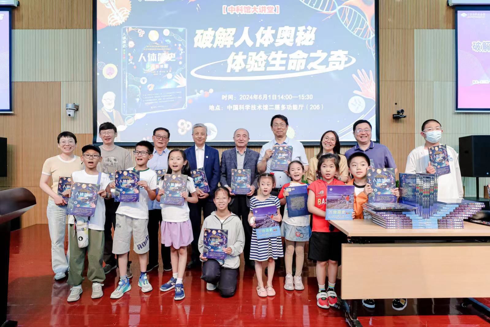 2024年6月1日,由接力出版社和中国科学技术馆联合举办的“破解人体奥秘,体验生命之奇——比尔·布莱森《人体简史(少儿彩绘版)》新书发布会”在中国科学技术馆举办。著名古生物学家、《人体简史(少儿彩绘版)》译者苗德岁,解放军总医院第三医学中心急诊科原主任王立祥,北京大学医学部医学人文学院教授张大庆,中国科普作家协会副理事长尹传红,中国科普作家协会食品科普创作专业委员会主任单守庆,中国古动物馆馆长王原,北京大学医学部药学院教授李治中,北京市海淀区中关村第三小学图书馆馆长胡阳,接力出版社总编辑白冰,接力出版社青年分社副社长申立超出席。