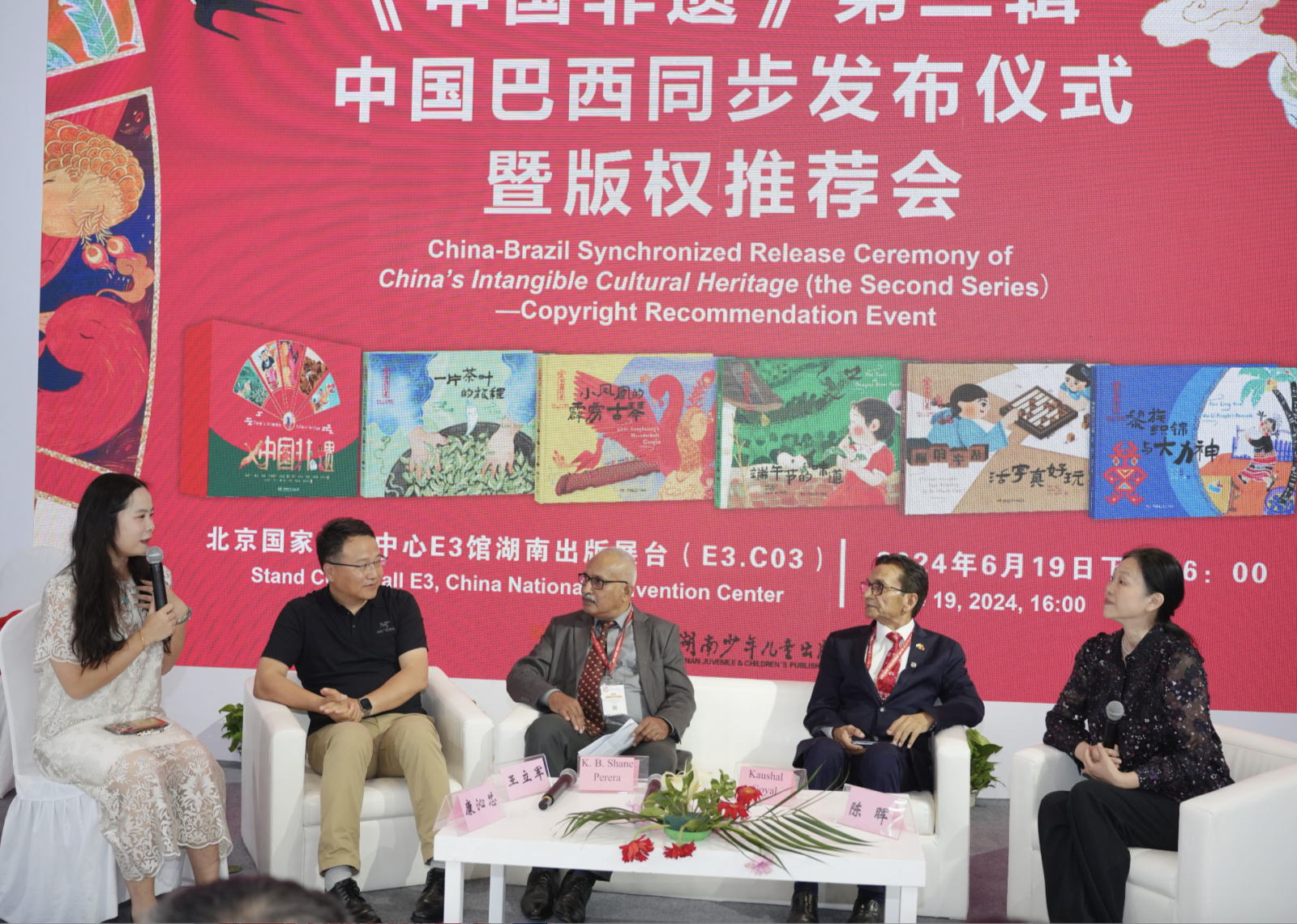 6月19日,第三十届北京国际图书博览会(BIBF)开幕当天,由湖南少年儿童出版社举办的《中国非遗》第二辑中国巴西同步发布仪式暨版权推荐会在湖南展馆举行,通过璀璨的非物质文化遗产,搭建起连接过去与未来、中国与世界的独特桥梁。