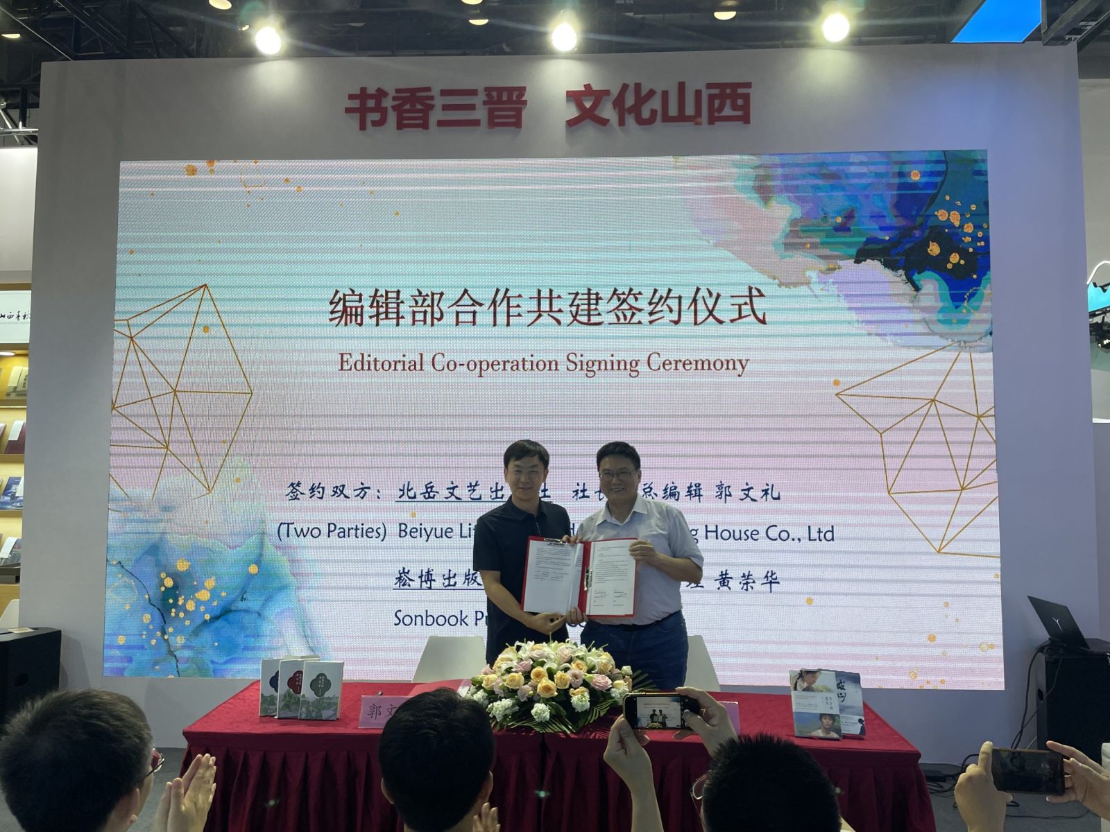 6月20日15时30分,北岳文艺出版社同中国台湾崧博出版事业有限公司繁体中文翻译权及数字版权合作授权暨编辑部共建仪式在国家会议中心BIBF综合馆山西展区举行。