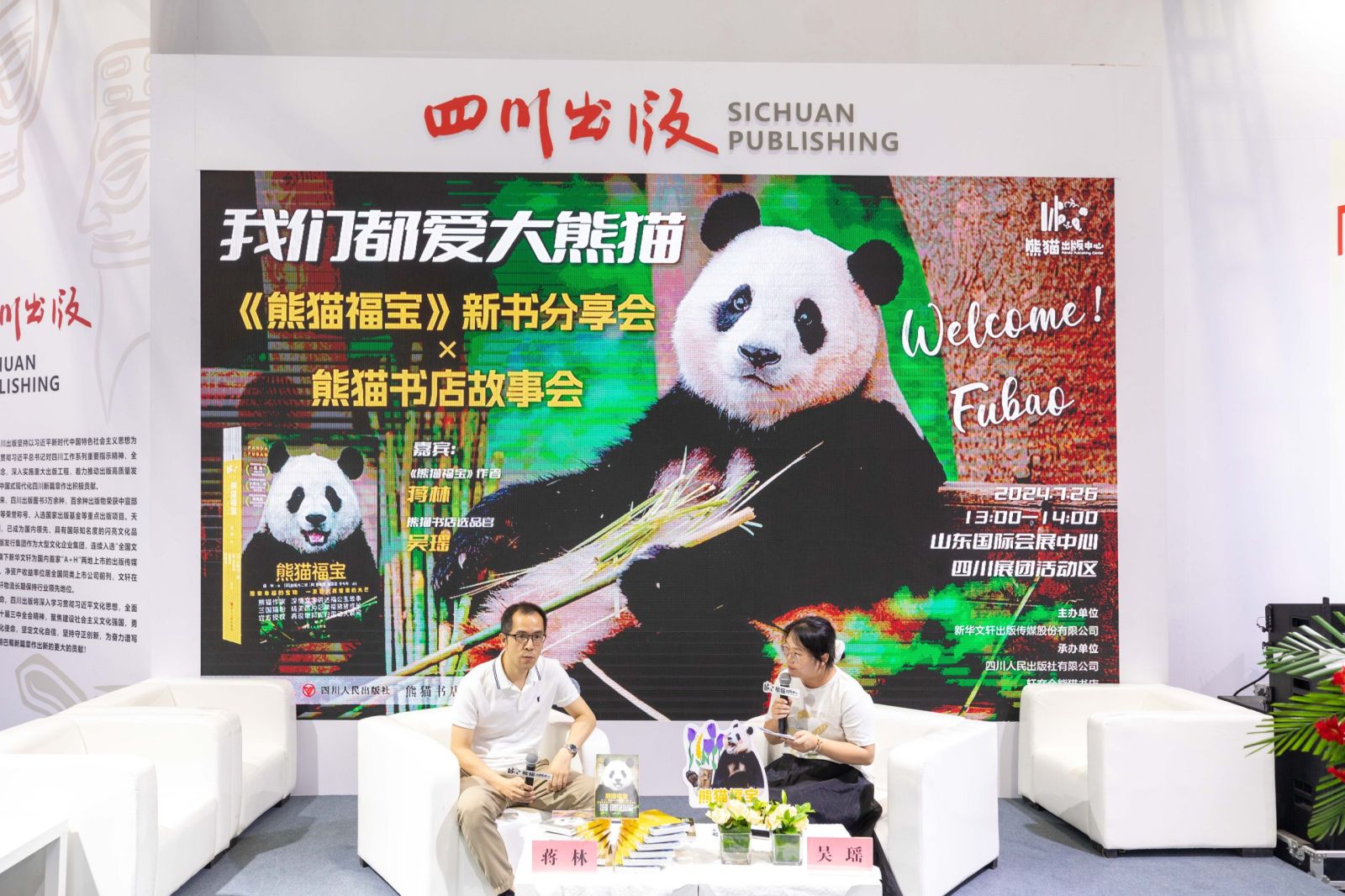 7月26日,第32届全国图书交易博览会(以下简称书博会)在济南开幕,由四川人民出版社出版的新书《熊猫福宝》亮相书博会熊猫书店快闪店。下午13:00,“我们都爱大熊猫——《熊猫福宝》新书分享会×熊猫书店故事会”在书博会主会场山东国际会展中心四川展区成功举行。