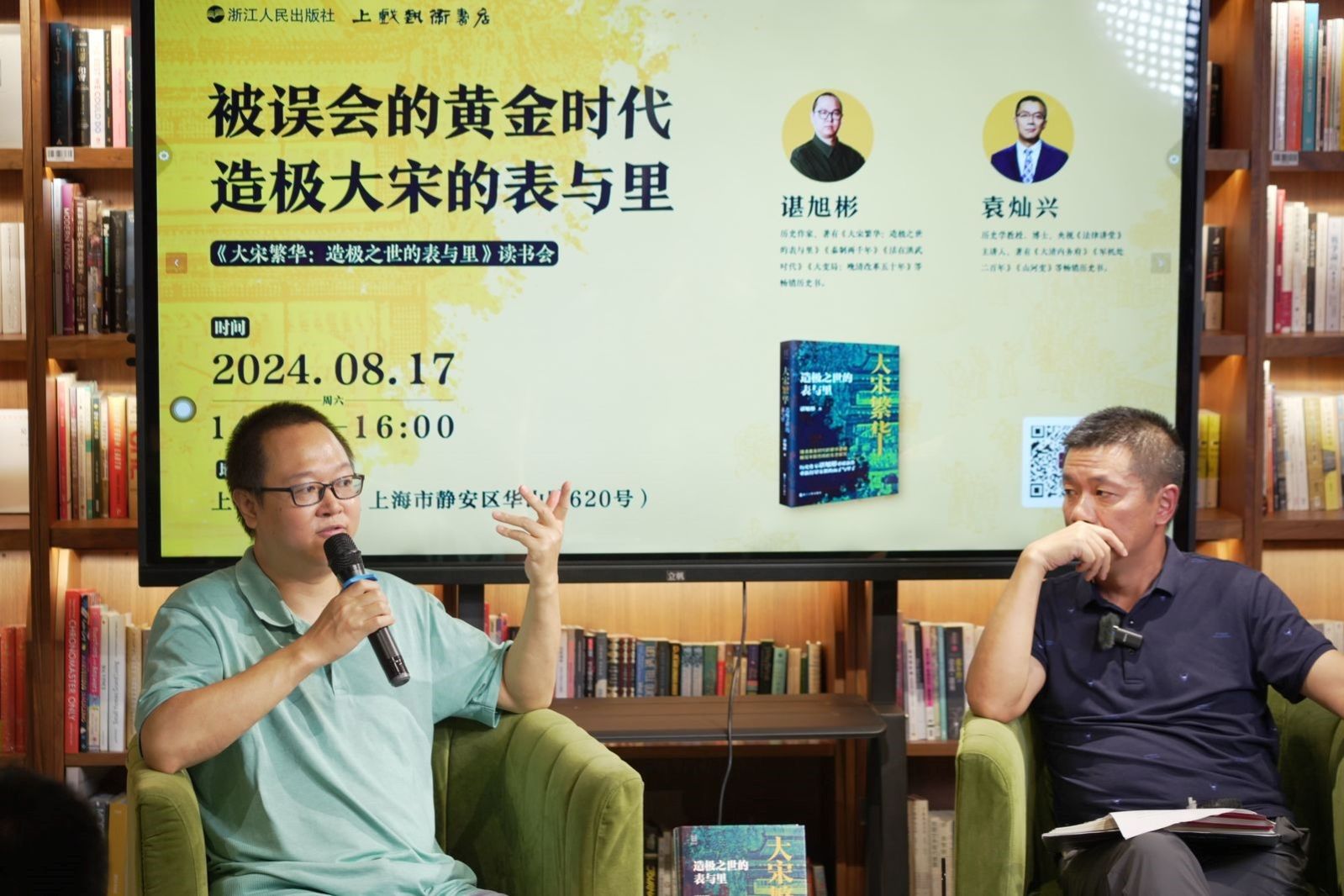 8月17日下午,主题为“被误会的黄金时代:造极大宋的表与里”的读书沙龙在上戏艺术书店如期举行。作者谌旭彬与历史学教授、博士袁灿兴就繁华大宋背后的细节开展对谈。