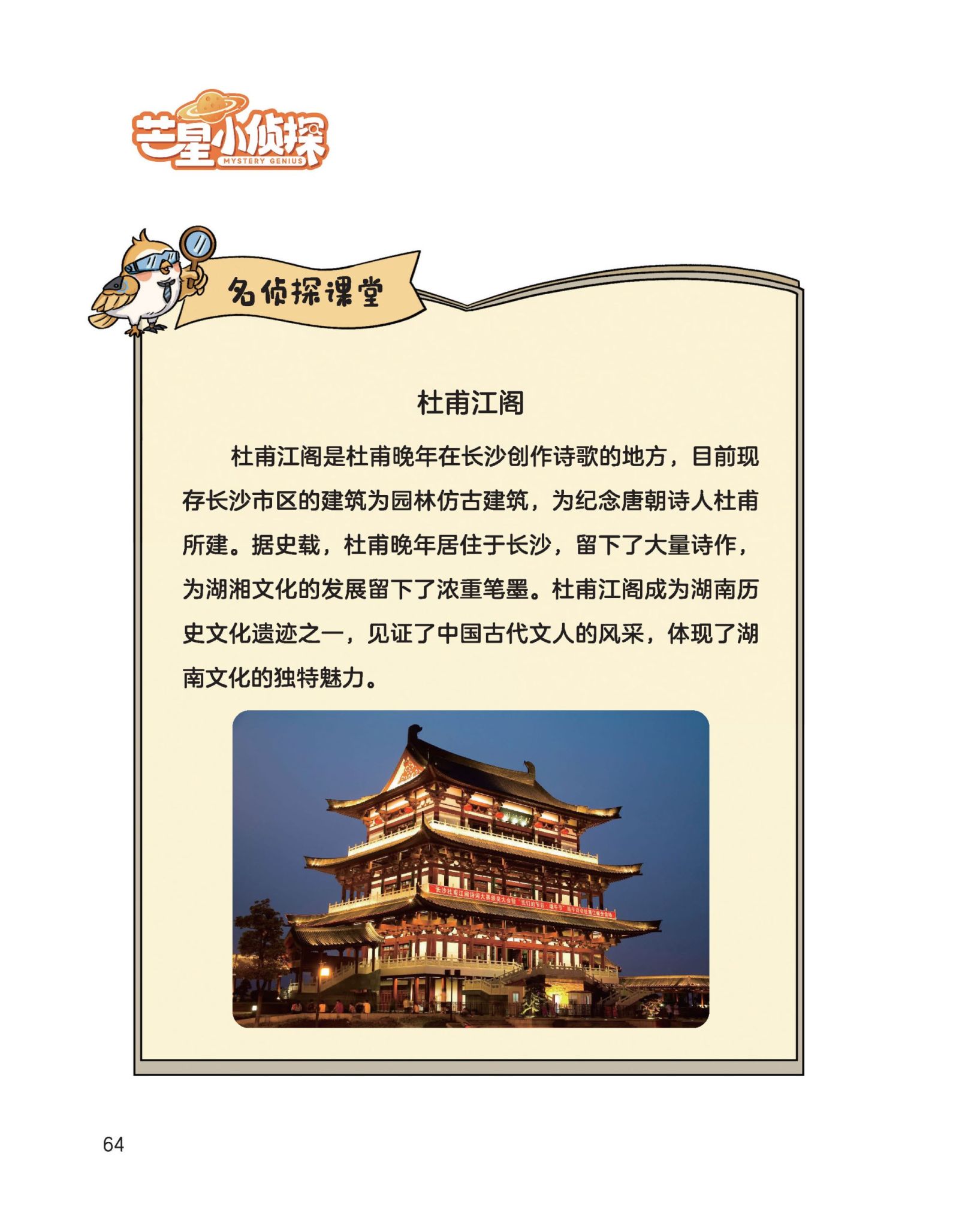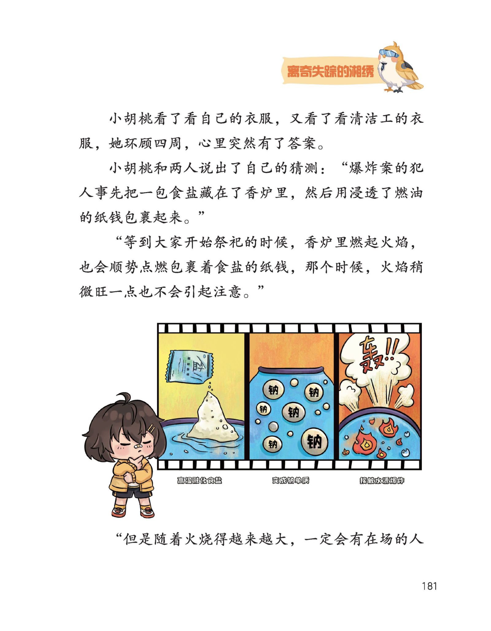 这本书不仅是一本侦探小说,更是一部寓教于乐的文化读本。将长沙这座历史悠久的城市作为故事背景,巧妙地融入了杜甫江阁的古朴书香、湘江的壮丽风光、火宫殿的繁华市井,以及湘绣这一非物质文化遗产的璀璨魅力。小读者们不仅可以跟随小侦探们破解谜团,更仿佛亲身游历,感受长沙深厚的历史底蕴和独特的文化风情。在紧张的探查过程中,小侦探们不仅需要敏锐的观察力和逻辑推理能力,更要调动丰富的科学知识。从物理学的浮力原理,化学的分子解析,到信息技术的数据分析,书中融入了大量生动有趣的科学知识。通过生动有趣的故事情节和丰富多样的知识科普,让青少年在阅读中感受到中华优秀传统文化和现代科学知识的魅力,激发他们的文化自信和民族自豪感。