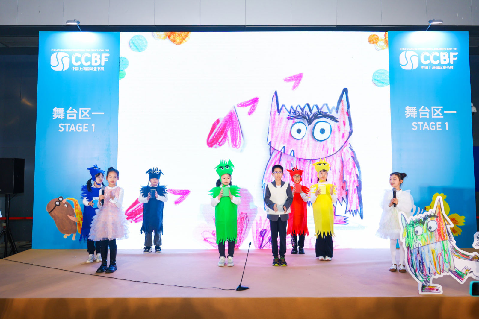 在绘本表演环节,小朋友们穿上和爸爸妈妈DIY制作的小怪兽服装,充满活力的表演,将快乐、悲伤、害怕、平静等情绪展现得栩栩如生,舞台下的观众也沉浸在剧情之中。安娜非常开心,特别认可这场表演,她未曾料到自己创作的绘本竟然会以这样的形式在舞台上呈现。