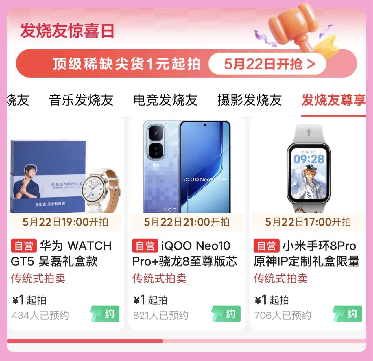 又好又便宜的京东618将于5月底正式开启,为了给消费者更多惊喜,京东将于5月22日至6月12日打造六大超级惊喜日,为不同兴趣爱好的消费者带来好玩有趣的活动和多轮超级大奖。5月22日是京东打造的首个发烧友惊喜日,殿堂级发烧装备将在当天1元起拍,消费者当天下单3C数码新装备还能获得满21减20元的大额外卖券。无论你是数码爱好者,还是专业收藏家,现在打开京东搜索“发烧友惊喜日”就能提前预约获得竞拍资格,5月22日10点打开京东APP搜索“发烧友惊喜日”,即可进入发烧友惊喜日会场参与拍卖,当天下午17点来发烧友惊喜日3C数码采销直播间,有机会将心仪的好物收入囊中。