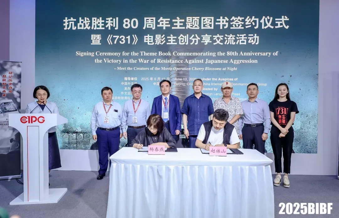 6月19日,抗战胜利80周年主题图书签约仪式暨《731》电影主创分享交流活动在2025北京国际图书博览会(BIBF)现场成功举办。活动由中国外文局指导,外文出版社、长影集团有限责任公司联合主办。