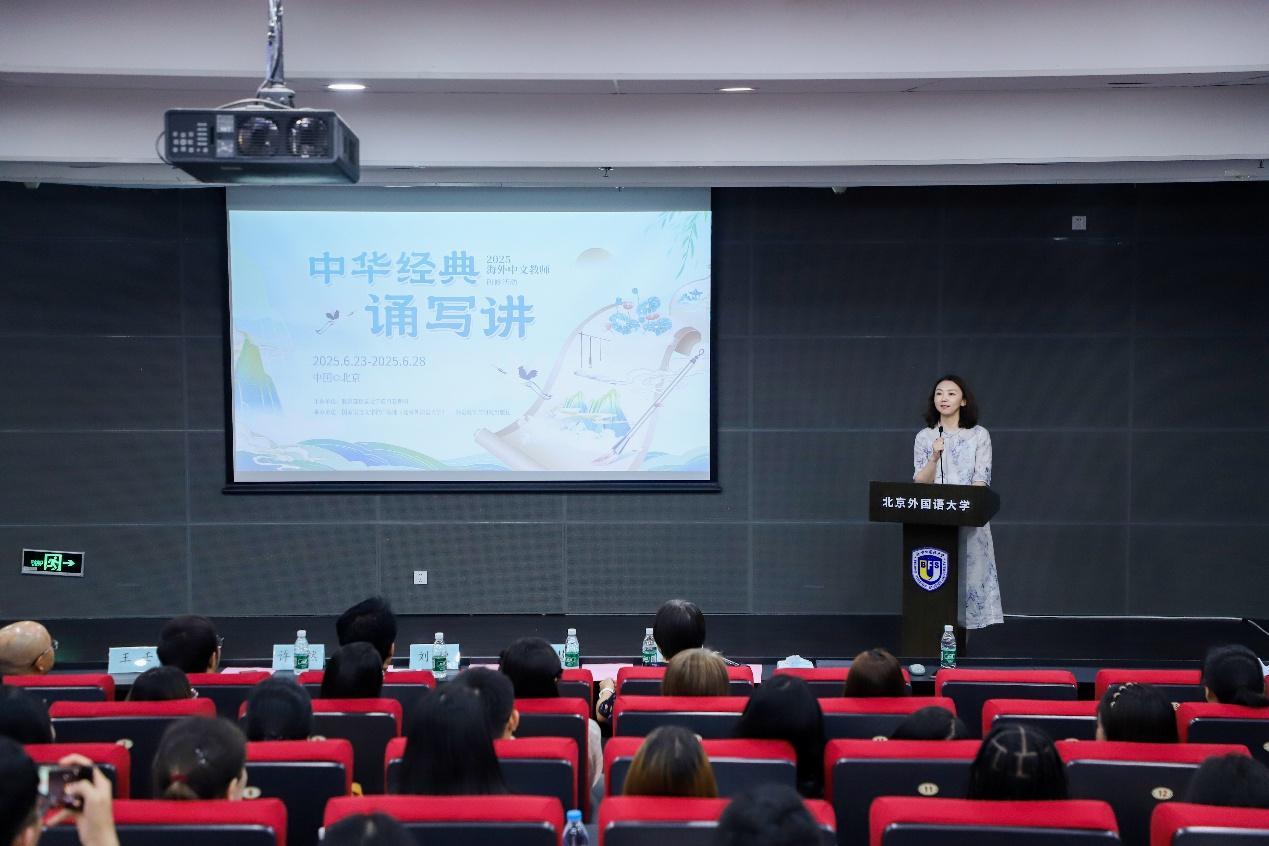 2025年6月24日,由教育部语言文字应用管理司主办,国家语言文字推广基地(北京外国语大学)、外语教学与研究出版社承办的2025海外中文教师中华经典诵写讲研修活动在北京外国语大学国际大厦学术报告厅顺利开班。国家语言文字推广基地(北京外国语大学)主任、外研社总编辑刘捷出席活动并致辞。来自中国、阿富汗、爱尔兰、哈萨克斯坦、吉尔吉斯斯坦、老挝、马来西亚、美国、缅甸、摩洛哥、斯里兰卡、苏丹、泰国、乌克兰、新加坡、越南、印度尼西亚等17个国家的约100位学员齐聚一堂,共同开启中华经典学习与传播的新篇章。
