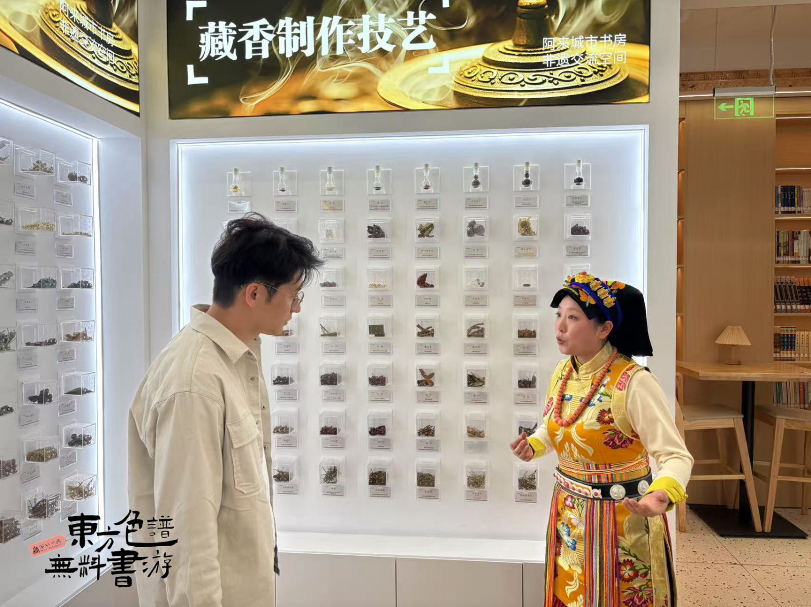 张潇巧妙引入“东方色谱”项目的核心概念——色彩地理学,嘉宾们围绕横断山脉的雄浑地貌、藏寨碉楼厚重质朴的土黄与褐红、以及象征纯洁神圣的“白石之白”,畅谈地理色彩如何塑造地域文化性格和审美基因。江馆长亦向远道而来的“书游同好者”推介了馆藏中反映嘉绒民族、历史与文学的珍贵地方文献。