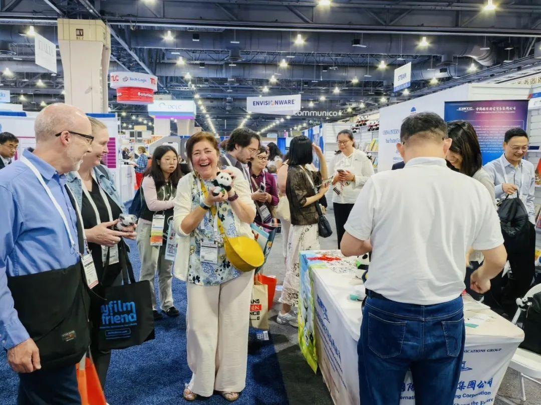 中国国际传播集团展区打造了别开生面的熊猫主题读者互动活动,展台以憨态可掬的熊猫玩偶点缀,营造出充满中国韵味的氛围。