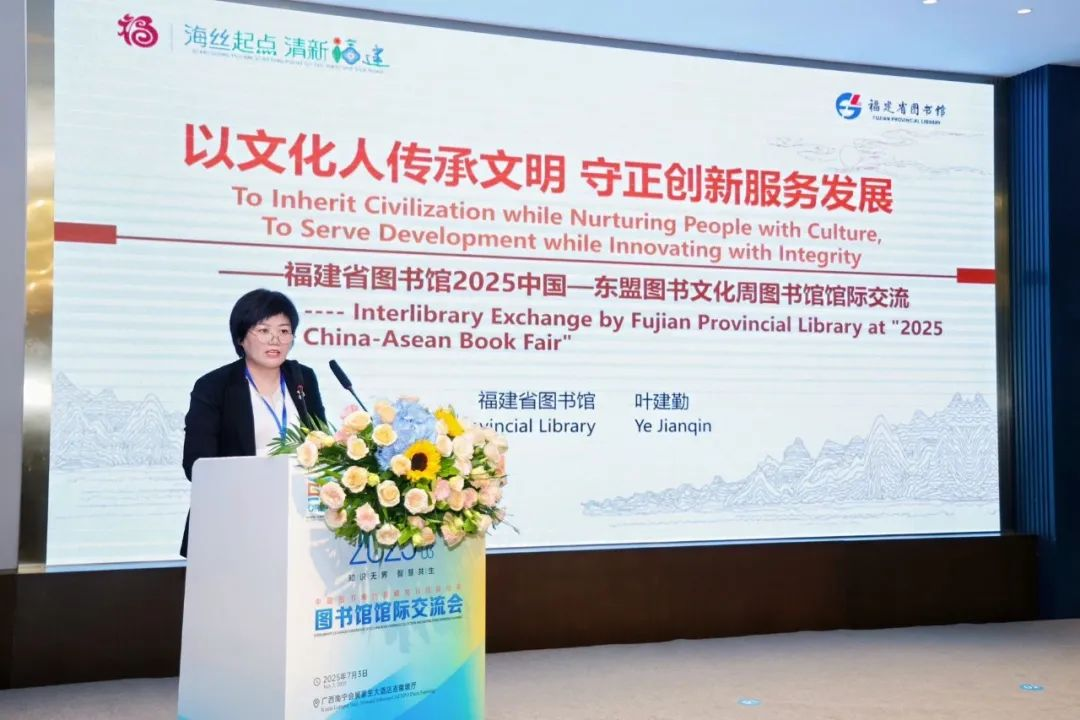福建省图书馆馆长叶建勤介绍,其馆立足书香社会,打造开卷有益的阅读生态;立足八闽文化,打造传承弘扬的阅读生态;立足纸数融合,打造场景多元的阅读新生态,未来将继续根植丰厚的福建地方文化宝库,秉持“以文化人”的初心,守护典籍瑰宝的根脉,以守正创新的勇气为传统注入时代活力,期待与业界朋友们携手同行,共谱图书馆事业发展新篇章。