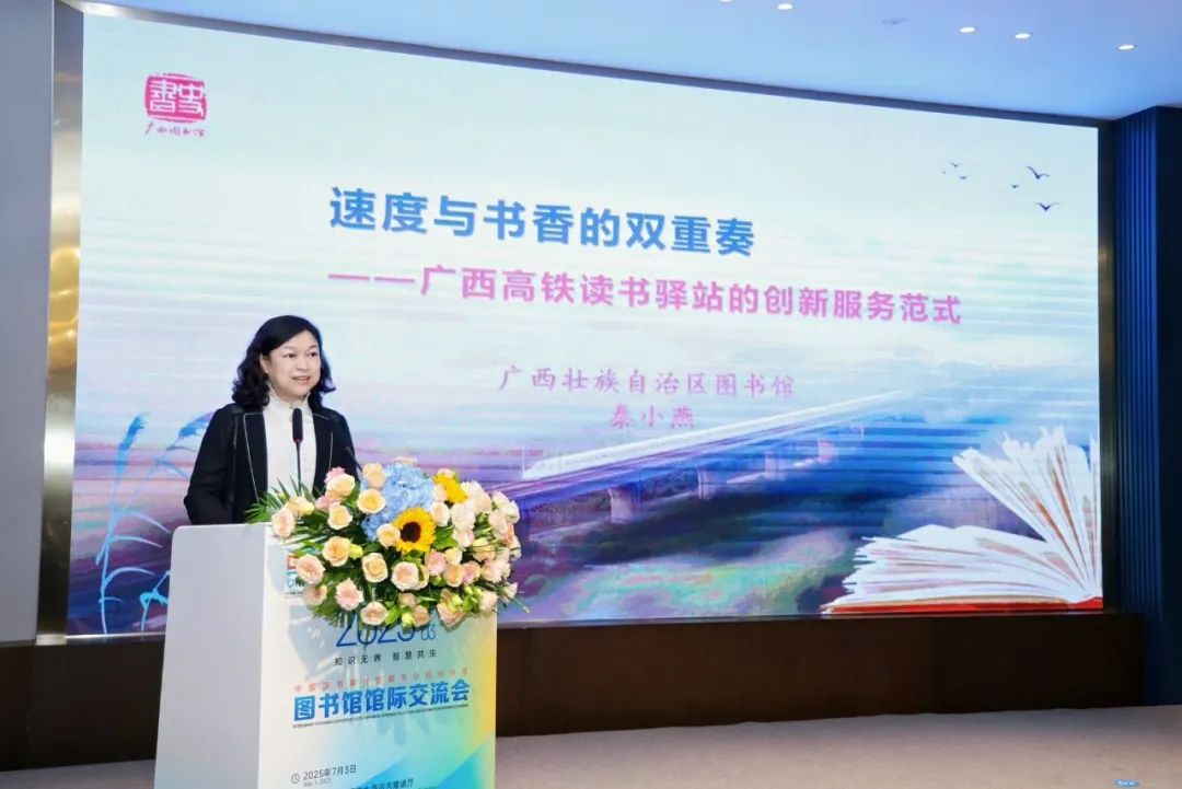广西壮族自治区图书馆馆长秦小燕分享到,广西在全国首创高铁读书驿站建设,建成覆盖全区的高铁阅读网络,开创 “文旅+铁路”跨领域合作新模式,证明了数字化时代,公共文化服务可突破时空限制。广西在构建面向东盟的国际大通道、打造西南中南开放发展新战略支点、形成“一带一路”有机衔接重要门户等方面具有独特的区位优势,希望以此为契机,为东盟旅客提供多语言阅读服务,进一步促进人文交流。
