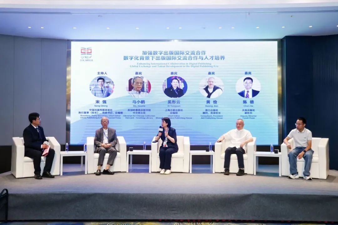 美国哈佛燕京图书馆中文部主任马小鹤、奚彤云、黄俭、陈德根据“在数字化技术驱动下,如何通过国际合作突破数字出版内容与技术壁垒,实现出版融合高质量发展”,从不同角度分析了各自观点。马小鹤分享了其馆的国际合作经验,他提到,其校虽纸本书借阅率下降,但东亚研究领域的学者仍保持较高的纸本资源使用率,可谓新的行业洞察。在奚彤云看来,出版社要在场景设计、个性化定制服务方面不断进行研发,馆藏机构、研究团队和出版机构的通力协作,是国际合作的可靠性原则范式。黄俭分享了经验:在童书市场国际拓展中,技术共享与本土化创新成为破局关键。出版社应注重与海外图书馆体系的深度合作,加强研究不同地区馆藏特点,制定精准落地策略。陈德认为,数字技术正深度赋能大众出版,国内市场尤其是童书资源做有声剧、有声书效益很好,同时电子书“走出去”也大有可为。