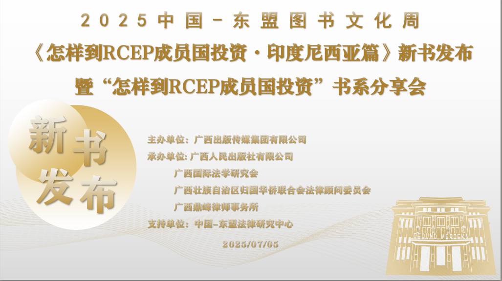 2025年中国—东盟图书文化周于7月3日至6日在南宁国际会展中心盛大举办。作为文化周的重要活动之一,7月5日,《怎样到RCEP成员国投资・印度尼西亚篇》新书发布暨“怎样到RCEP成员国投资”书系分享会成功举行。