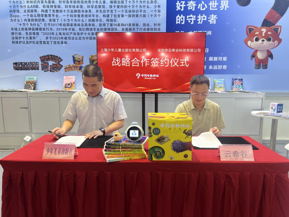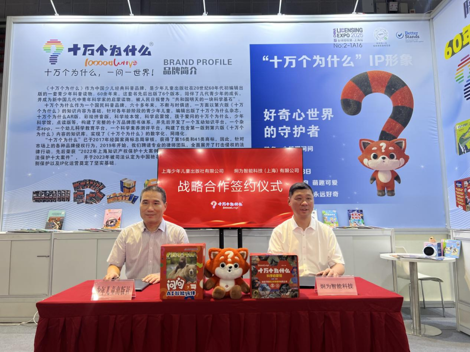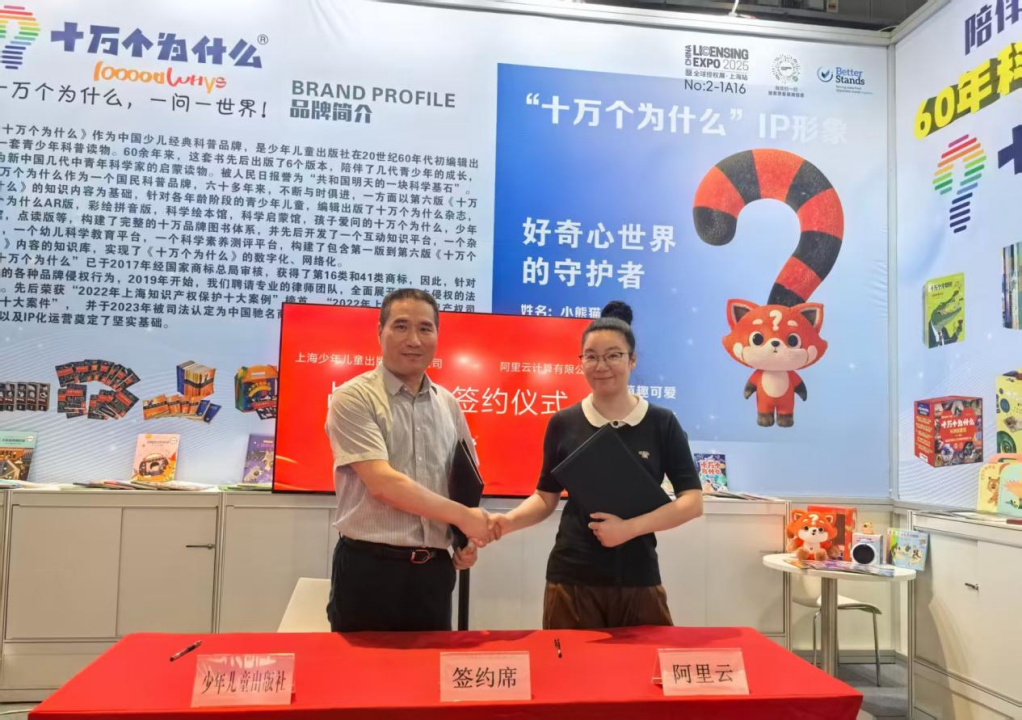 近日,第八届LEC全球IP授权展在上海国家会展中心举行。上海少年儿童出版社有限公司携其经典科普品牌“十万个为什么”参展,展示了该IP旗下书刊、智能问答产品、系列文创等众多产品。同时,该社分别与与阿里云、炯为智能科技、云希谷科技及窗宇画廊签订了合作框架协议——标志着 “十万个为什么”正式进入人工智能应用新赛道以及系统性进军XR领域。