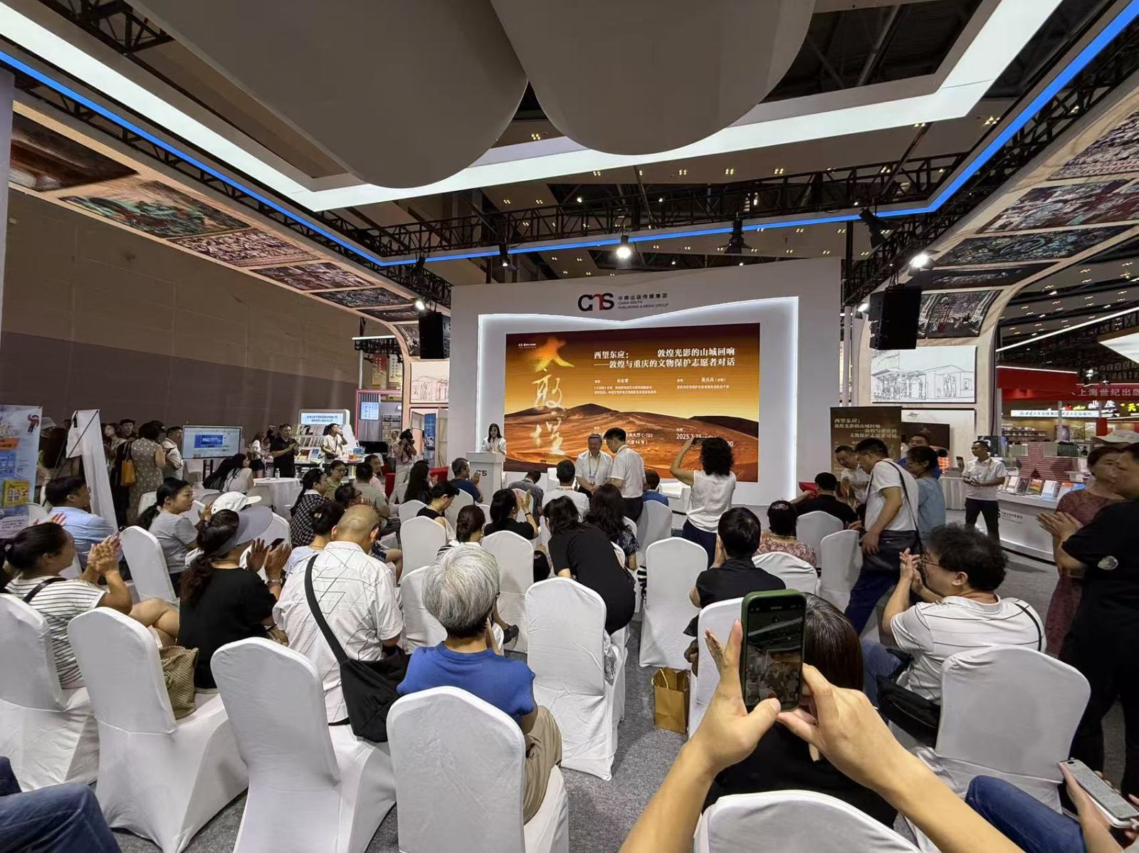 2025年7月25日上午,在第33届全国图书交易博览会湖南展区,由湖南美术出版社主办的“西望东应:敦煌光影的山城回响——敦煌与重庆的文物保护志愿者对话”活动成功举办。此次活动围绕新书《大敦煌:一部山川地理、古往今来的敦煌路书》展开,聚焦敦煌与重庆两地文化遗产的保护与传承,探讨如何挖掘历史记忆、提升公众保护意识。