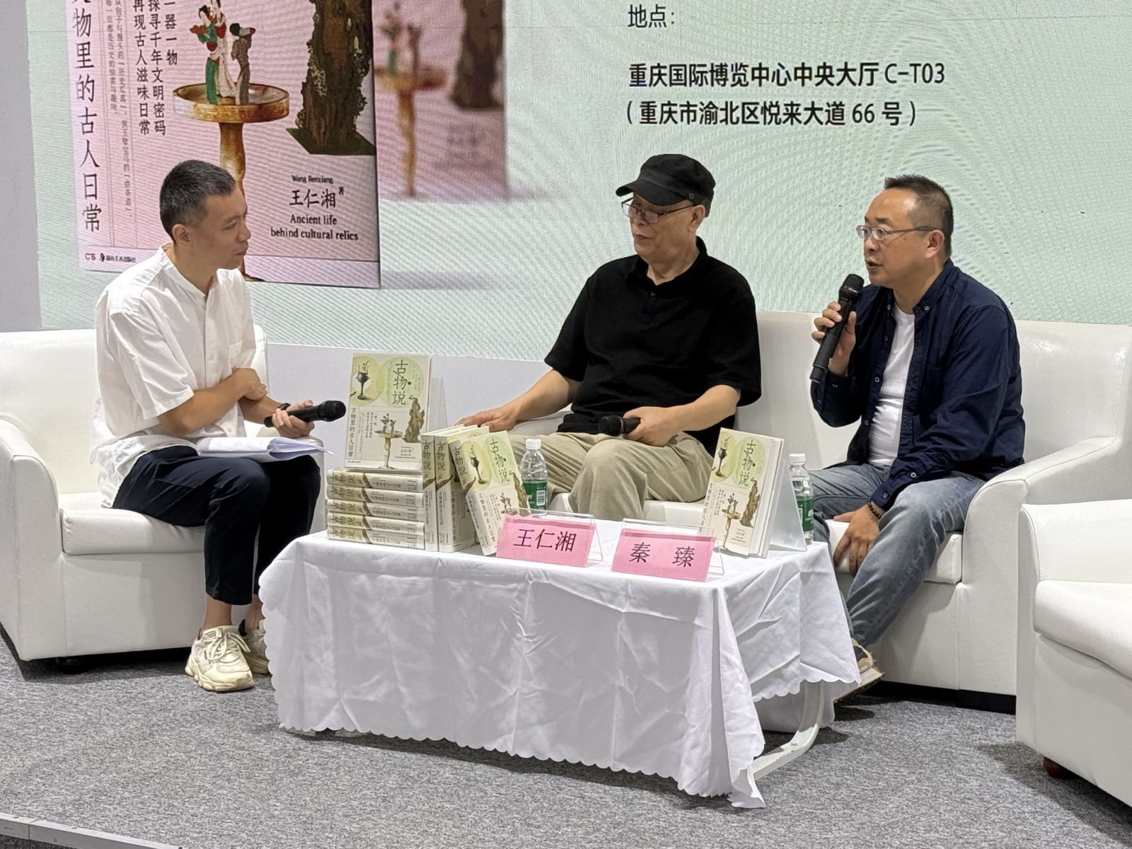 2025 年 7 月 27 日上午,重庆书博会中南传媒展区人头攒动,《古物说:文物里的古人日常》新书分享会在此拉开帷幕。中国社会科学院考古研究所研究员王仁湘与四川美术学院教授秦臻两位考古学者,以 “古人日常” 为切口,“以生活烟火”为话题,带领现场读者透过文物的细节,触摸千年前的生活温度。
