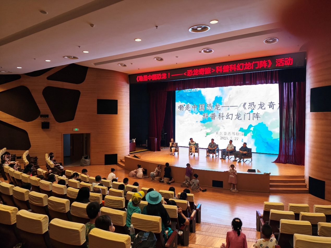 2025年7月27日下午,由重庆自然博物馆与少年儿童出版社主办的“嘞是中国恐龙!——《恐龙奇旅》科普科幻龙门阵”在重庆自然博物馆举行。4位来自文博场馆、少儿科幻创作、科普传播等领域的专家齐聚一堂,以中国恐龙为起点,在200多位观众面前展开一场横跨科学与想象、现实与童心的“龙门阵”。本次活动由重庆自然博物馆展览服务部主任,副研究馆员李小英主持。