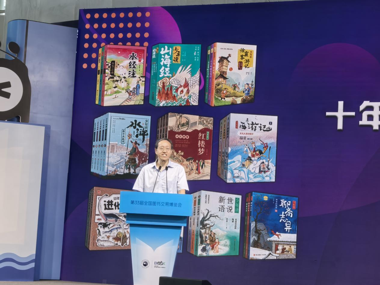 7月26日上午,第33届全国图书交易博览会第二天,青岛出版集团组织的“少年读”十年回望暨品牌发布会在现场举行。