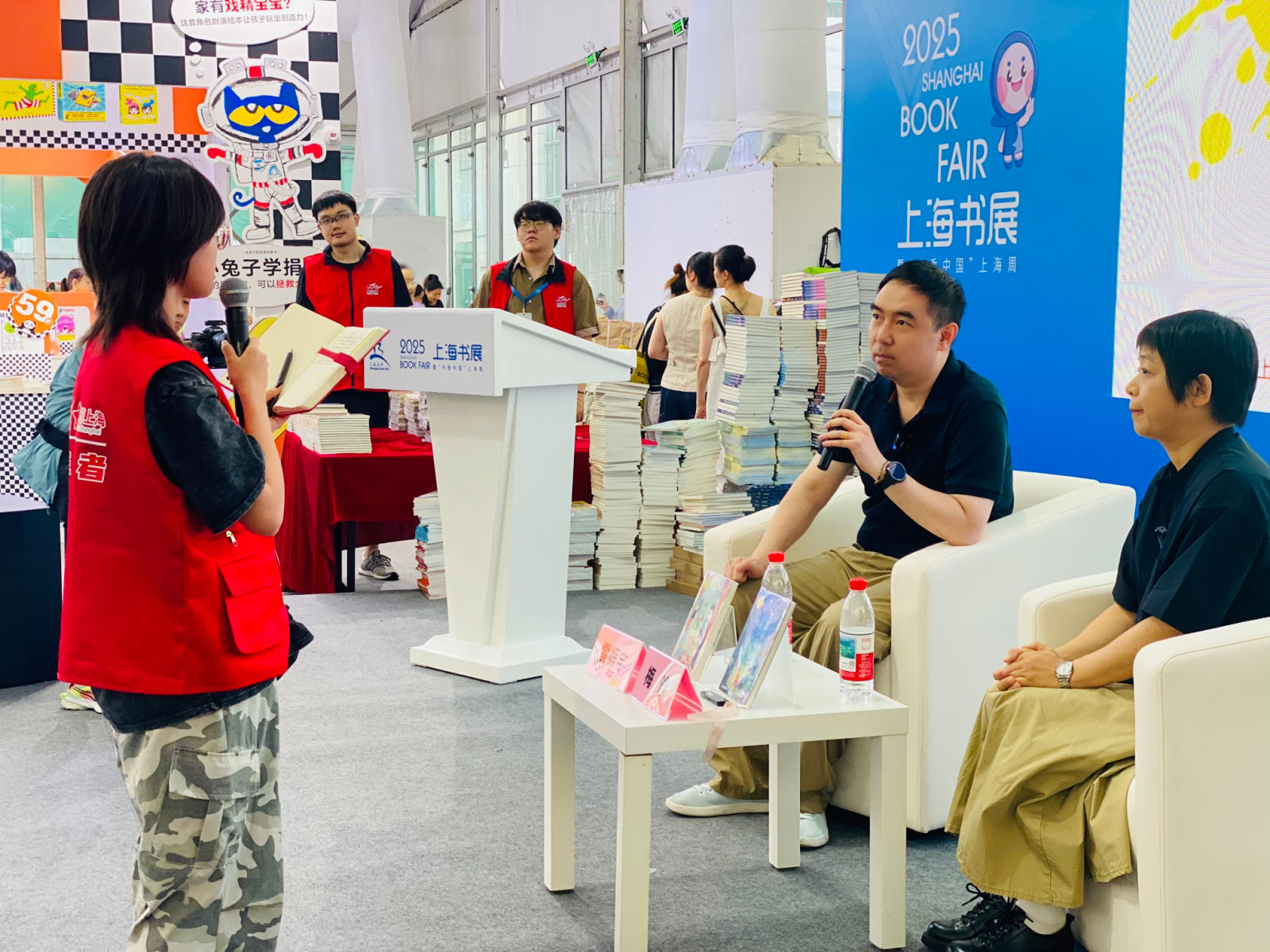 2025年上海书展在无数爱书之人的翘首期盼中如期而至。8月14日下午,文教结合支持项目“情境化读写:当纸质童书遇见AI——数智时代的读写秘笈”活动在上海展览中心少儿馆举行。两位著名儿童文学作家:梅瑜和雷振宇,结合他们的最新作品《不灵不灵的阿灵》和《寻找匹诺曹》,一同登台为现场读者分享创作初衷和AI赋能的奥秘。活动上海市语言文字工作委员会办公室指导,上海学生阅读联盟主办,上海市科技艺术教育中心、少年儿童出版社、上海少儿读物促进会承办。
