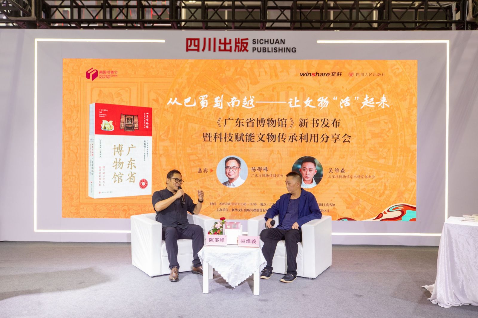 当巴蜀文化遇见南越风华,当千年文物遇见现代科技,将碰撞出怎样的火花?2025年8月15日,“从巴蜀到南越——让文物‘活’起来”暨《广东省博物馆》新书发布暨科技赋能文物传承利用分享会在2025南国书香节·粤港澳大湾区国际书展四川主宾省馆隆重举行。本次活动由新华文轩出版传媒股份有限公司主办,四川人民出版社有限公司承办,旨在通过新书发布与前沿分享,探索科技赋能文物发掘、保护、研究与传承的新路径。