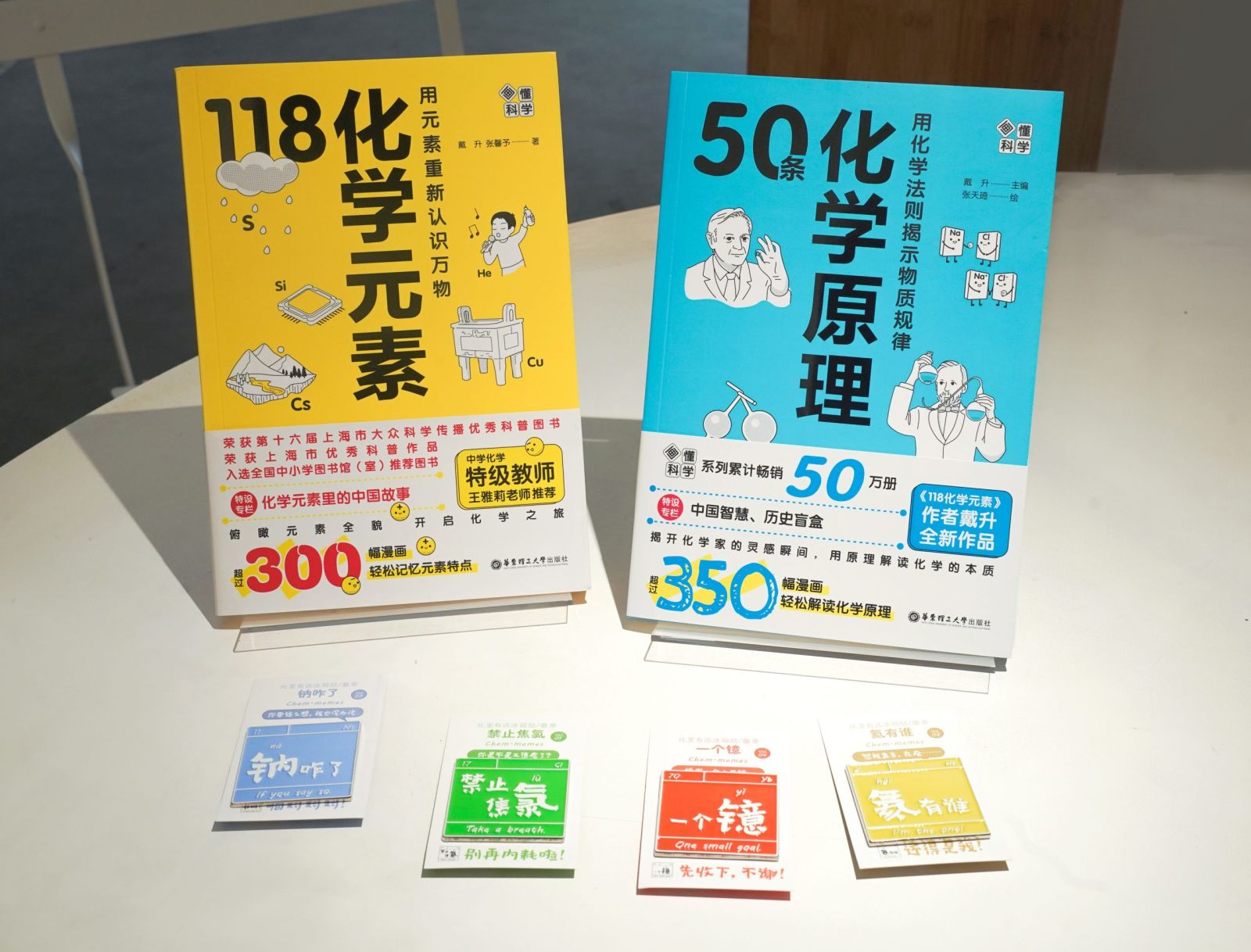 在科普图书出版中,华东理工大学出版社倡导用“中国故事讲科学、用科学精神育新人”。三年前《118化学元素》一书问世,出版至今,发行量已超50万册,本书荣获第十六届上海市大众科学传播优秀科普图书、上海市优秀科普作品并入选全国中小学图书馆(室)推荐图书,作者戴升教授也荣获第十六届上海市大众科学传播新锐人物。今年的上海书展,戴升教授再推姊妹篇《50条化学原理》,将视角从“认识世界”推进到“理解世界”。《50条化学原理》把中学课堂里的50个核心概念,还原为50段跨越百万年的文明现场,让原理不再抽象。