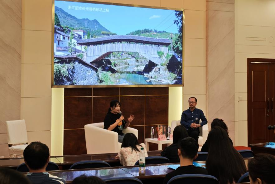 分享会上,王慧莲分享了众多令她动容的古迹故事,其中尤以形态各异、承载着丰富地域文化与营造智慧的古廊桥为例。比如浙江省泰顺县的两座廊桥,2014年王慧莲曾前往当地探访记录,2016年台风莫兰蒂将廊桥冲毁。“2017年国庆我再去的时候,发现桥被重建了。洪水退了之后,当地的老乡把被冲走的桥体构件又给捞回来,能用的继续用到重建的桥上,我觉得他们盖起来的不光是一个桥,更是这种造桥技艺的传承,是对前人的敬仰。”王慧莲说道。