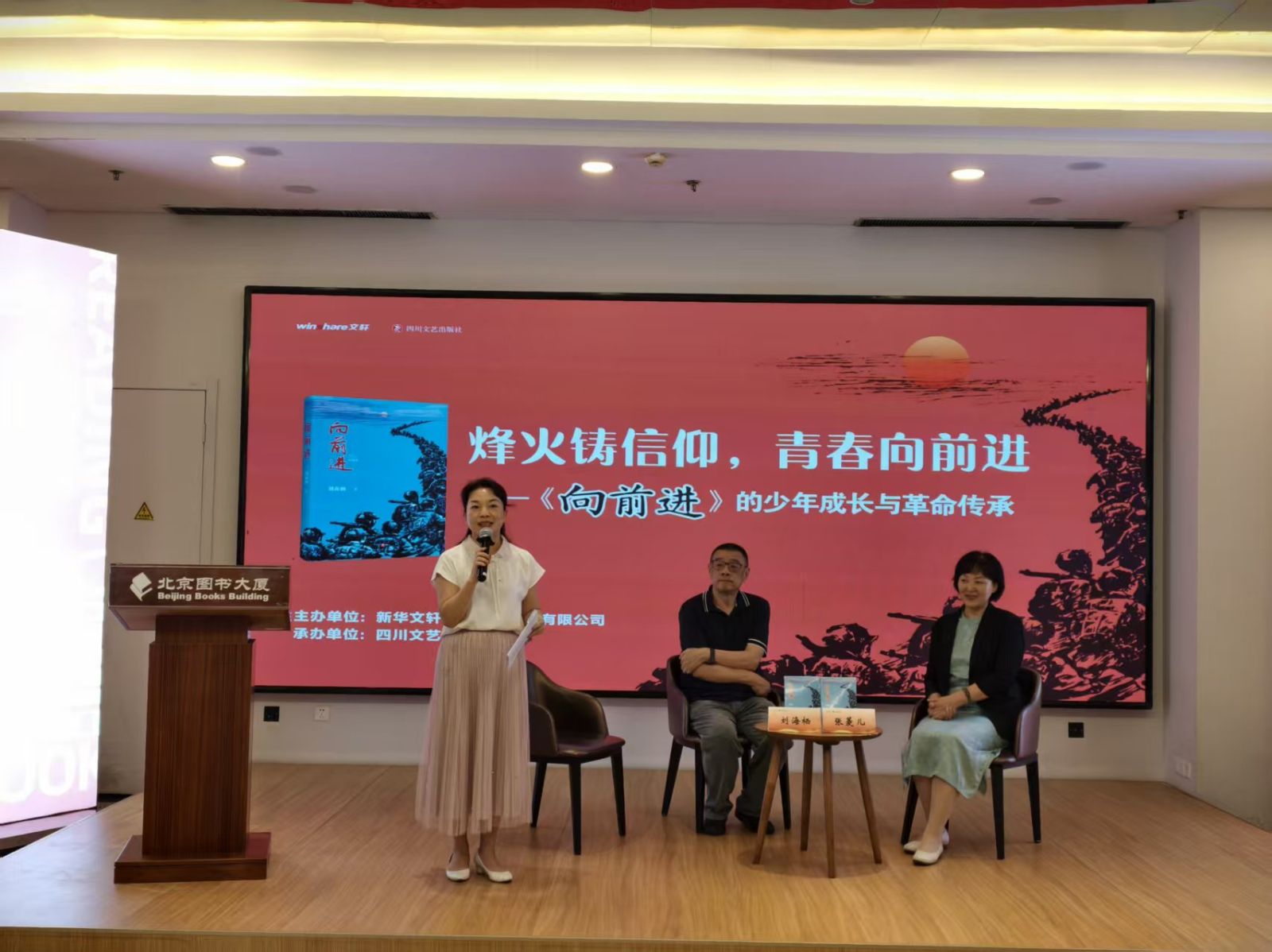 在青少年历史教育日益受到重视的当下,如何让革命历史以鲜活、生动且贴近青少年认知的方式走进他们的心灵,成为文化传播与教育工作的重要命题。2025年8月18日下午,由新华文轩出版传媒有限公司主办,四川文艺出版社与北京西单图书大厦承办的“烽火铸信仰 青春向前进——《向前进》的少年成长与革命传承新书分享会”在北京西单图书大厦举办,该书作者、中国作家协会会员、中国作家协会儿童文学委员会委员刘海栖与中国儿童文学作家张菱儿出席分享会。