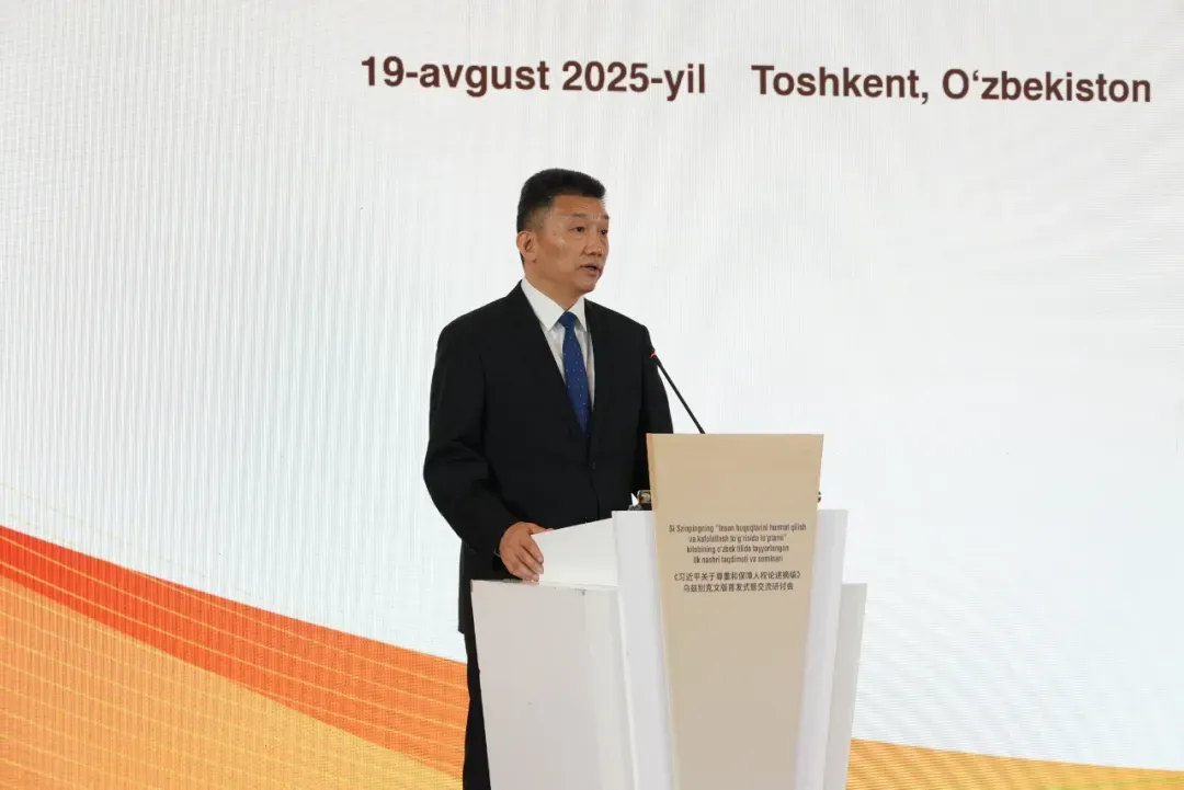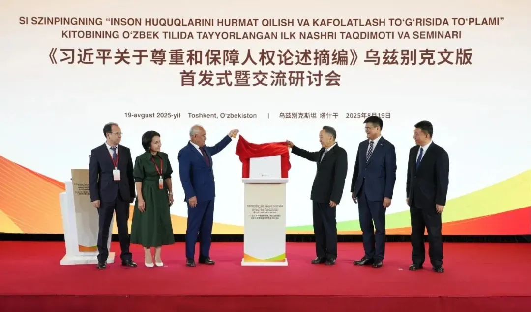 当地时间8月19日,《习近平关于尊重和保障人权论述摘编》乌兹别克文版首发式暨交流研讨会在乌兹别克斯坦首都塔什干举行。