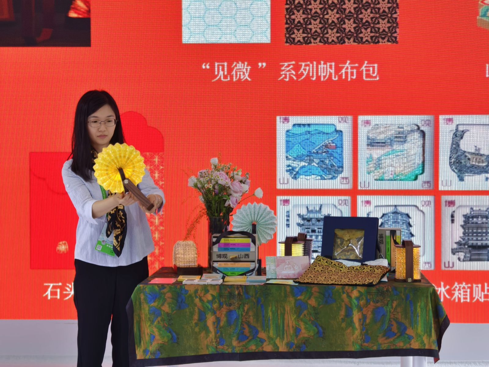 山西教育出版社重点图书策划室副主任、《博观山西》丛书负责人崔璨详细介绍了“博观山西”文创品牌。该品牌以丛书内容为核心,构建“见微”“秘藏”“以禮”三大产品系列,其中“见微”系列的主元素来自朔州崇福寺弥陀殿五绝之一的各式窗花纹样,开发了氛围灯、金属书签、帆布包等产品,赋予传统文化当代时尚表达;在数字文创领域,通过原创数字绘画与AE技术,将云冈石窟、应县木塔等文化符号制成动态视频,打造沉浸式文化体验。未来,“博观山西”将持续深挖山西文化资源,推动“书+文创”创新融合,打造具有地域特色的文化IP。