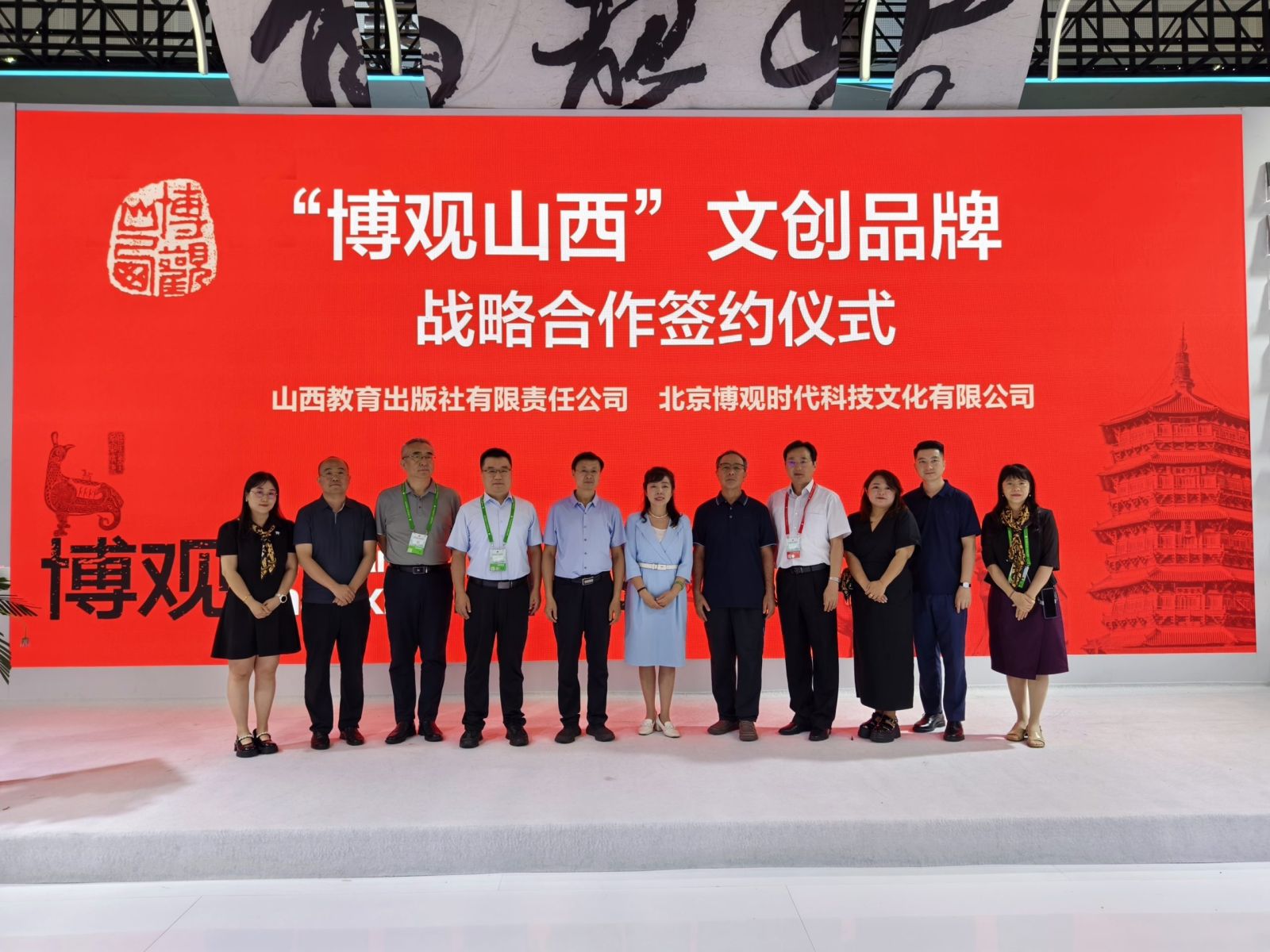活动现场,山西教育出版社与北京博观时代科技文化有限公司共同签署“博观山西”文创品牌战略合作协议。此次签约标志着双方将在文创研发、品牌传播等领域深度合作,为山西文化资源转化为市场价值搭建桥梁,助力三晋文化破圈传播。