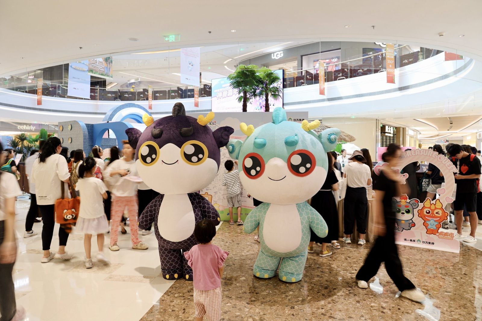 活动现场化身绚烂灵动的“神兽世界”,书中人气神兽——顶呱呱、乌墨墨等一众萌兽突破次元壁,由专业Coser倾情演绎,从书页图鉴跃入现实场景。小读者们与“活灵活现”的神兽拥抱合影,在沉浸式互动中,将 IP 形象从“纸上认知”升级为立体可感的记忆。围绕“大中华寻宝记”中的精彩知识点还设置了数个创意十足的互动游戏关卡,让孩子们在寻宝中运用智慧破解文化谜题。