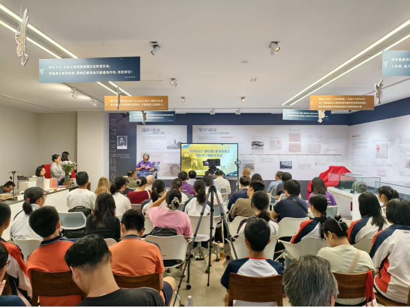 译者刘海宁分享了修订过程中的心得。他提到,拉贝在中国生活了30年,与中国人民建立了深厚情感,其日记不仅详实记录了日军的暴行,更体现出强烈的人道主义精神与正义感。刘海宁表示,本次修订在语言与考据上力求精准,是对历史负责、对读者负责的体现。刘海宁老师在现场分享了拉贝的一段日记:“在我的收容所(所谓的西门子难民收容所)的草棚里,在污泥垃圾中,过去的两个夜晚出生了两个婴儿:一个男婴和一个女婴。不能为产妇提供别的栖息之地,我真感到惭愧。……我分别给这两对夫妇送了10元钱,为此女婴取名‘多拉’,男婴取名‘约翰’,非常有趣!”刘海宁强调,这就意味着当时最年轻的难民可能都已经88岁了,正是这些细节让南京大屠杀的历史不再是粗线条的,而是精确到具体的时间、地点、人物,让侵略者无可辩驳。