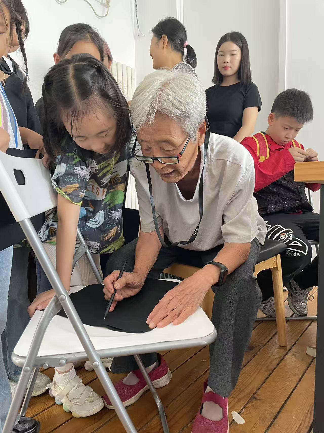开幕式前,孙枫玲奶奶现场教学,指导多位小朋友创作出了属于自己的撕纸作品。