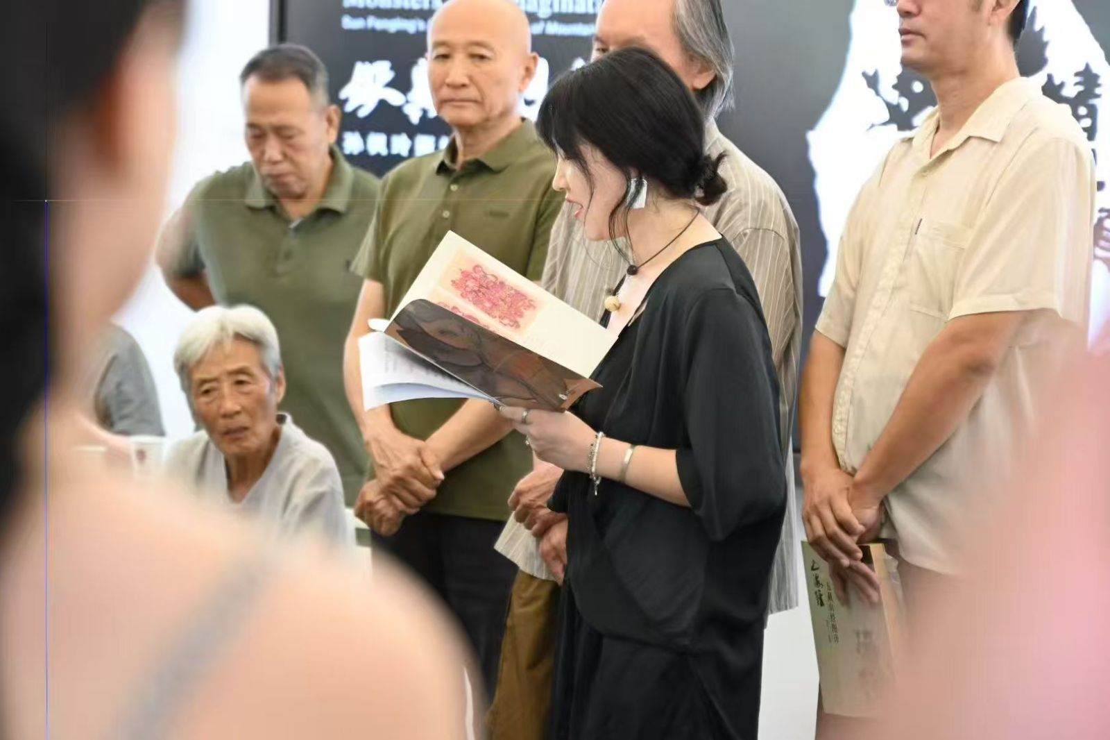 天津人民出版社副总编王轶冰在新书介绍中表示,撕纸是一门“返璞归真”的艺术,孙奶奶以最朴素的黑宣纸和双手,撕出了神秘朦胧的远古意象,与《山海经》的妖异想象相得益彰。她特别感谢策展人姜彦文团队多年来的坚持,使得孙枫玲的艺术得以系统呈现。