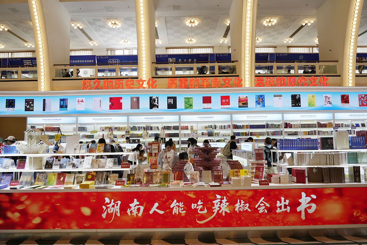 本届上海书展主宾省为湖南,湖南出版集团汇聚旗下12家出版发行单位,带来了超4000种精品好书及数十场重磅活动,全面展示并推介湖南近年来策划出版的重点出版物,并精选一批体现湖南元素、赓续湖湘文脉、彰显中南品牌的出版物参展。在湖南主宾省的展台上,长达40多米的柔性波浪数字屏与精品书台双屏联动,点亮湘江与黄浦江两江两岸的璀璨夜景,呈现“湘沪携手,文脉共承”的美好意象。湖南出版集团党委委员,中南传媒董事、总经理周亦翔在此前上海书展举办的新闻通气会上表示,“服务读者、推广阅读始终是我们的重要职责和神圣使命”。