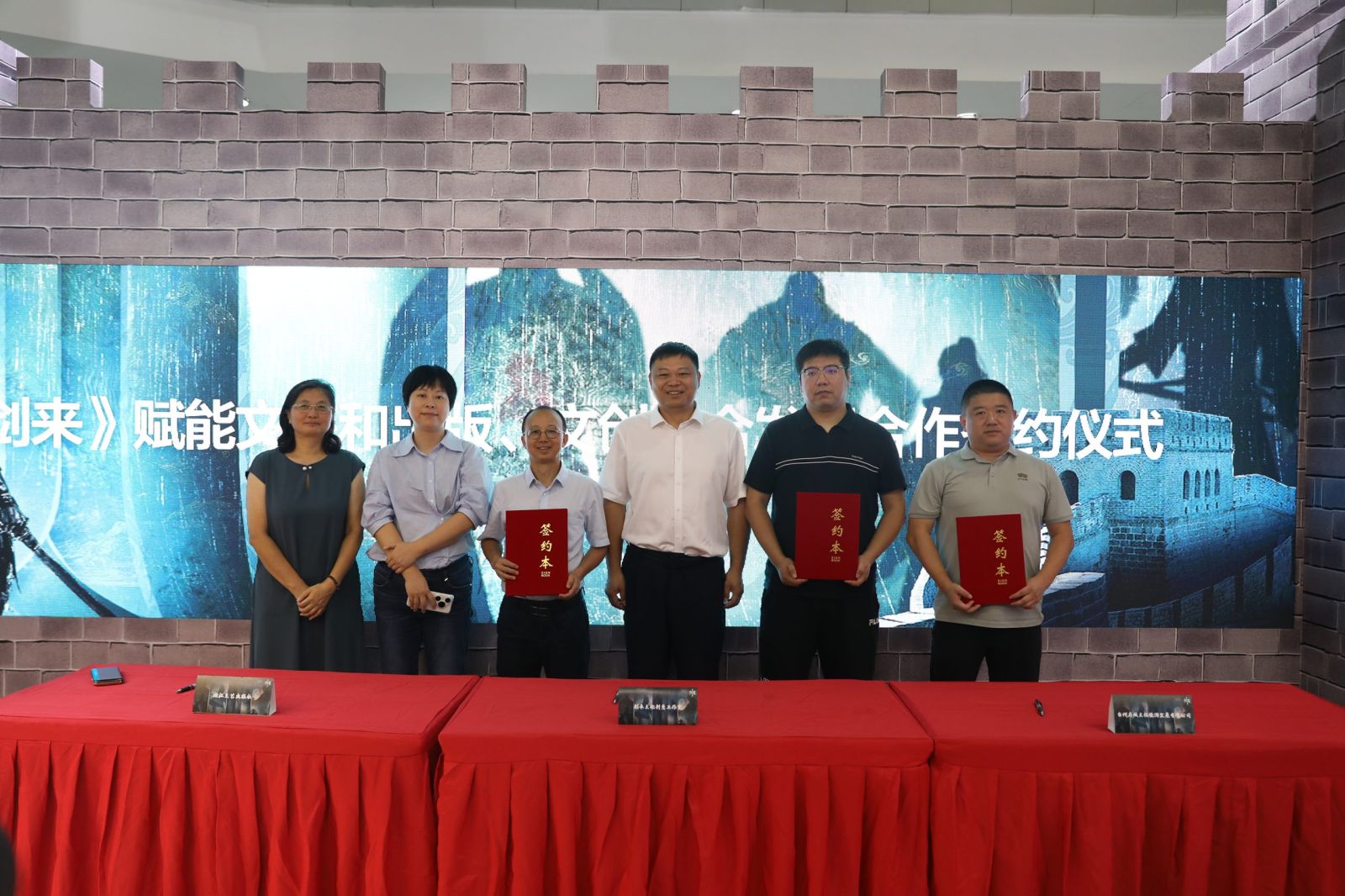 9月28日下午,由浙江文艺出版社、中共临海市委宣传部主办,台州府城文化旅游发展有限公司承办的“双向赋能 融合发展”《剑来》台州府城合作发展交流会在临海台州府城文化旅游区成功举办。浙江文艺出版社社长虞文军与中共临海市委常委、宣传部部长赵晟出席并致辞。双方代表浙江文艺出版社虞文军和台州府城文化旅游发展有限公司董事长陈健共同签署合作协议。肖惊鸿、丁莉丽、陈健、许志杰、胡晓翀等与会专家围绕“文化新三样的融合发展现状与展望”主题开展专题对谈。