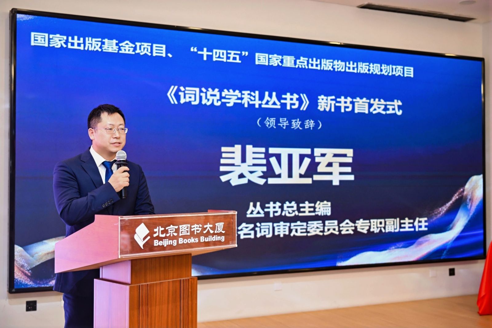丛书总主编、全国科学技术名词审定委员会专职副主任裴亚军在致辞中深刻阐述了科技名词工作的时代意义。他强调在人工智能、生物技术等前沿领域蓬勃发展的时代背景下,名词规范化工作是支撑科技创新、保障语言健康、传承中华文化、维护国家统一的重要手段。裴主任表示《词说学科丛书》是一套以“词”为纽带,系统阐释各学科核心术语的系列著作,是将“规范名词转化为社会共识”的实践结晶。