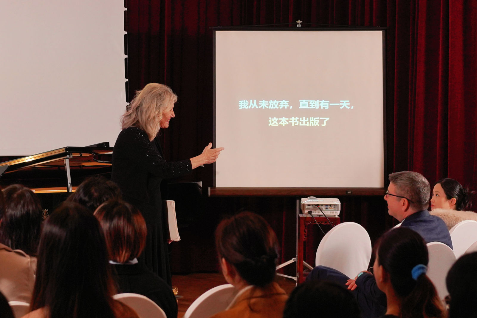 整场发布会最为动人的环节,莫过于莫娜·戈拉贝克女士呈现的音乐独幕剧。这一创新性的演出形式,将新书发布升华为一场融合视觉、听觉与情感的多媒体艺术体验。