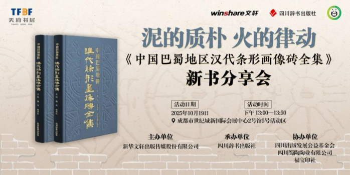 10月19日,《中国巴蜀地区汉代条形画像砖全集》在成都市新国际会展中心隆重首发。本次活动由新华文轩出版传媒股份有限公司主办,四川辞书出版社承办,四川出版发展公益基金会、四川蜀陶陶业有限公司、福宝印社协办。