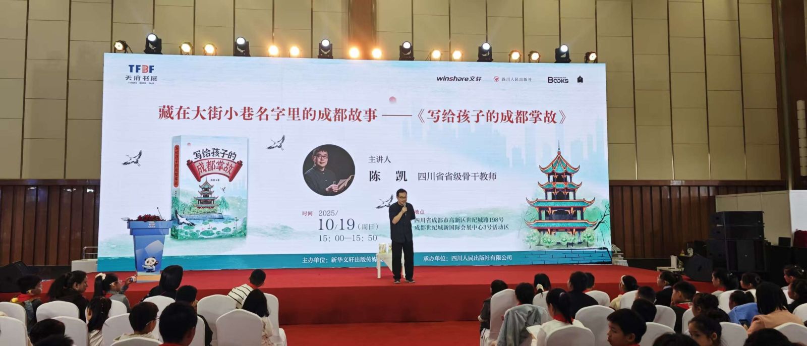 10月19日下午,由新华文轩出版传媒股份有限公司主办、四川人民出版社有限公司承办的“藏在大街小巷名字里的成都故事——《写给孩子的成都掌故》”主题分享活动,在成都世纪城新国际会展中心3号活动区成功举办。活动吸引了众多家长和孩子前来参与,现场气氛热烈,互动频频。