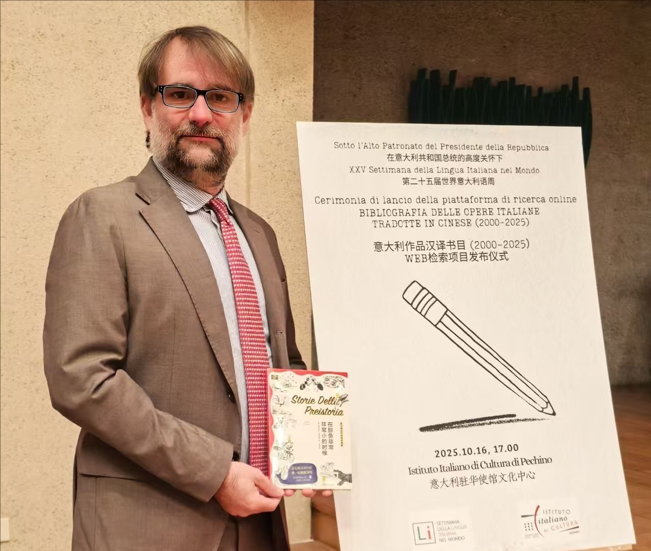 意大利驻华大使馆文化中心主任、文化参赞菲德利克与新书合影