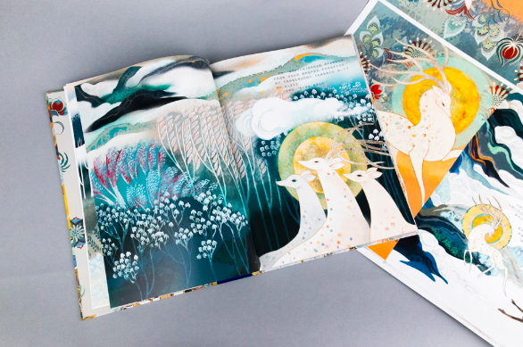 “《九色鹿》音画绘本是为未来而创作的,”谭盾说,“因为孩子们的未来,正是从今天的故事里延展出去的。”他自己的两个孩子也是听着九色鹿故事长大的。